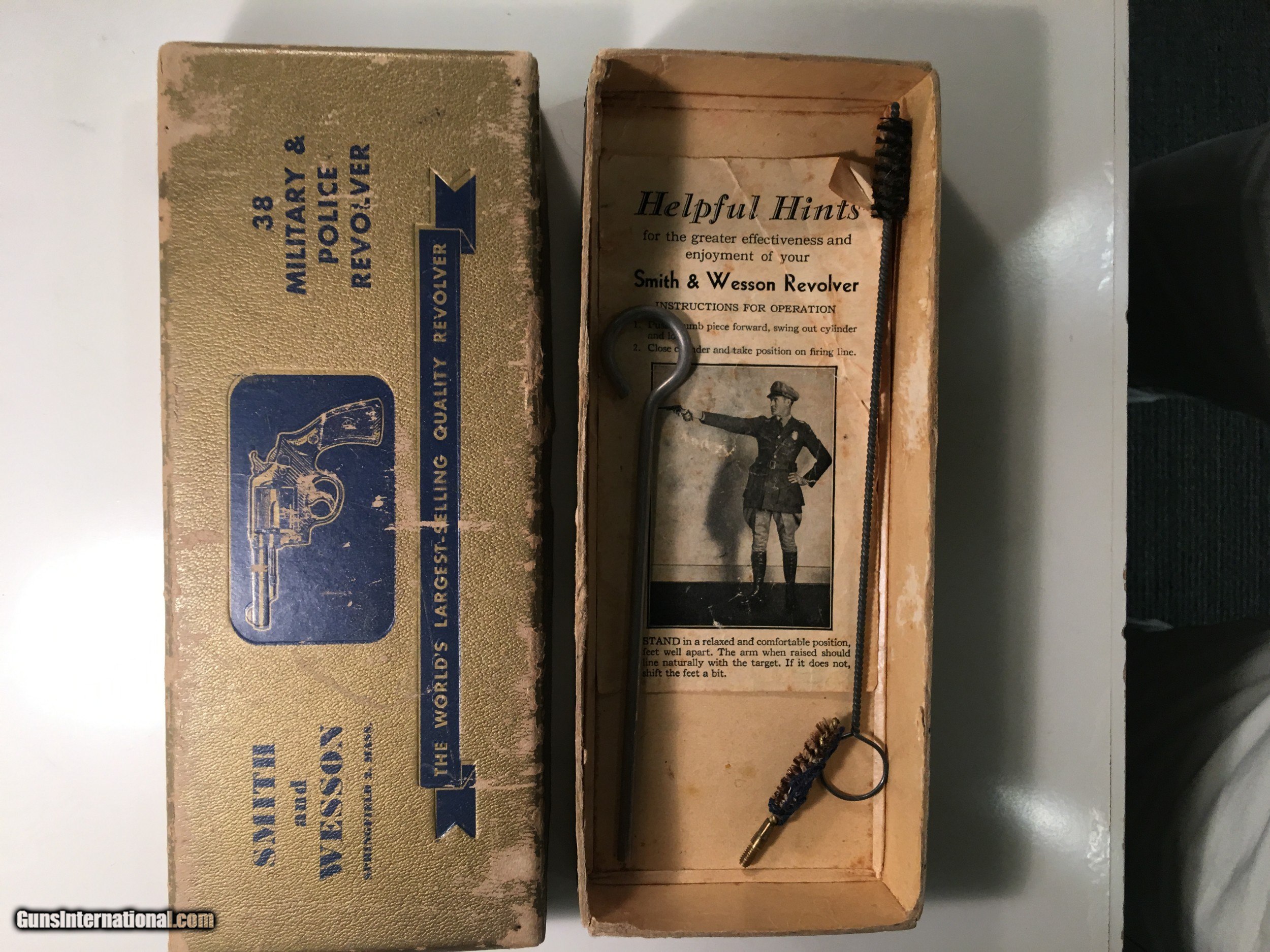 Description: S & W Military and Police .38 Caliber. Pristine, unfired including all accessories and packaging. Vintage 1945-7. Retired Army Special Forces Major General liquidating extensive collection of weapons accumulated over 50 years. The above is my first listing and depending on how things go, I will be listing several other items in the coming weeks. Happy to issue a letter on my stationary as to my ownership of anything purchased from me. Thanks for your interest. TMH SOLD Curio/Relic: Yes Serial Number: S 9239** |