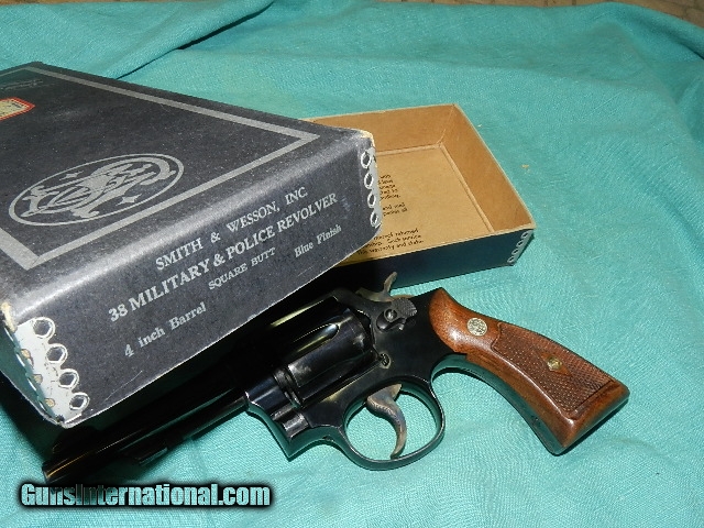 Description: This gun looks about NEW WITH 90% BLUE, AND a faint thin drag line common for S&W revolvers . Made in the mid-1950's these S&W revolvers are battle proven in WWII and used through-out the world as a police service revolver. Locks up tight, and functions very well.Chambered for the .38 special cartridge. Has a 4" pinned tapered barrel with a crisp excellent shiny bore, and the factory Magna walnut grips look very good, and are numbered to the gun. The inside of the grip frame has stamped : S.P.S. AUX 13 CD. Has the orignal blue S&W box correct for this gun. We don’t have asite .I prefer money orders or a check. Item ships when funds come in. If you can only pay with a card let me know. I hope you like my wide selection of unusual guns, knives and gun parts. Shipping price determined by zip code. I try to keep the prices affordable, which means I make less money than most dealers. You won’t get altitude sickness with my prices! I consistently have the best selection of older guns If you BUY IT NOW you must still contact us for details buy it now doesn't end the sale, it just sends an email telling us you want to buy this gun. A phone call won’t secure a sale! Not home many times, the first buyer by email buys the gun !Thissite doesnot close down a sale when you do a BUY IT NOW like Ebay!I can get six buy it nows in an hour, first buyer to email gets the guns, others are in second place! Best to send another email . Sometimes not home to get calls. Some guns are required shipment to a gun dealer near you for a transfer to you when it arrives. With the widest selection of older guns at great prices, We don’t have a store, and sell on the internet only. SOLD Curio/Relic: Yes |