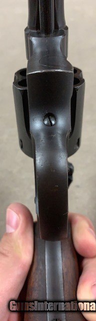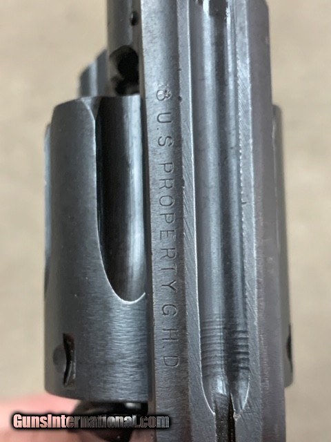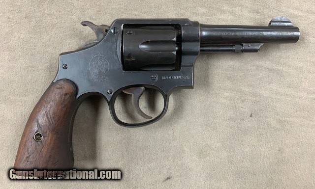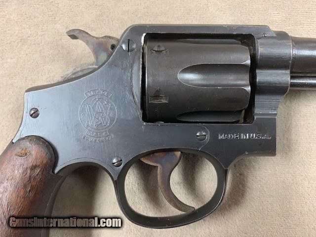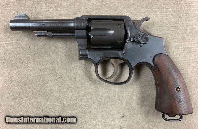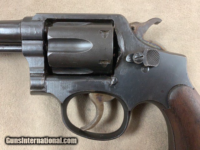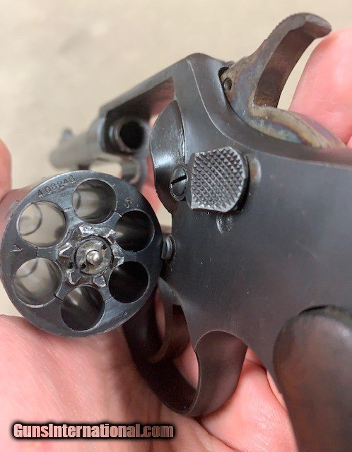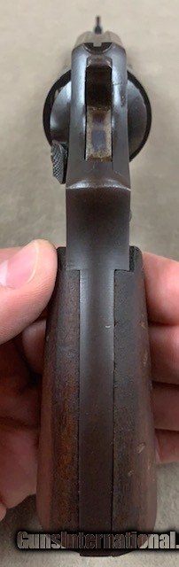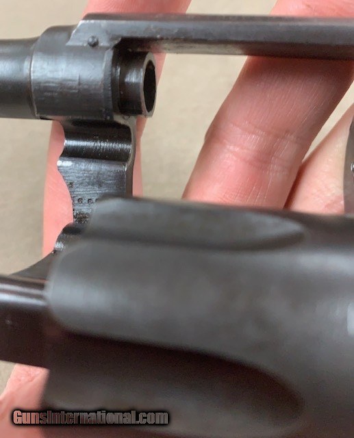 Description: This is an excellent original condition S&W Victory Model WWII .38 Special Revolver, and from the looks of it probably never issued until it was bought surplus years ago. It is excellent overall but does have one problem - a slight bulge and deep gauge on the interior of the barrel about half way down which is not visible from the outside. Revolver fires fine and one would never know unless they examined the inside of the barrel. However, because of this we have the gun priced at $395. instead of $695. where it would belong if the bore was perfect. There are new original Victory model barrels out there and I don't think it would be difficult or expensive to replace the barrel. In any event a very nice representative GI WWII revolver and in .38 Special and not .38 S&W like so many are. SOLD Curio/Relic: Yes |