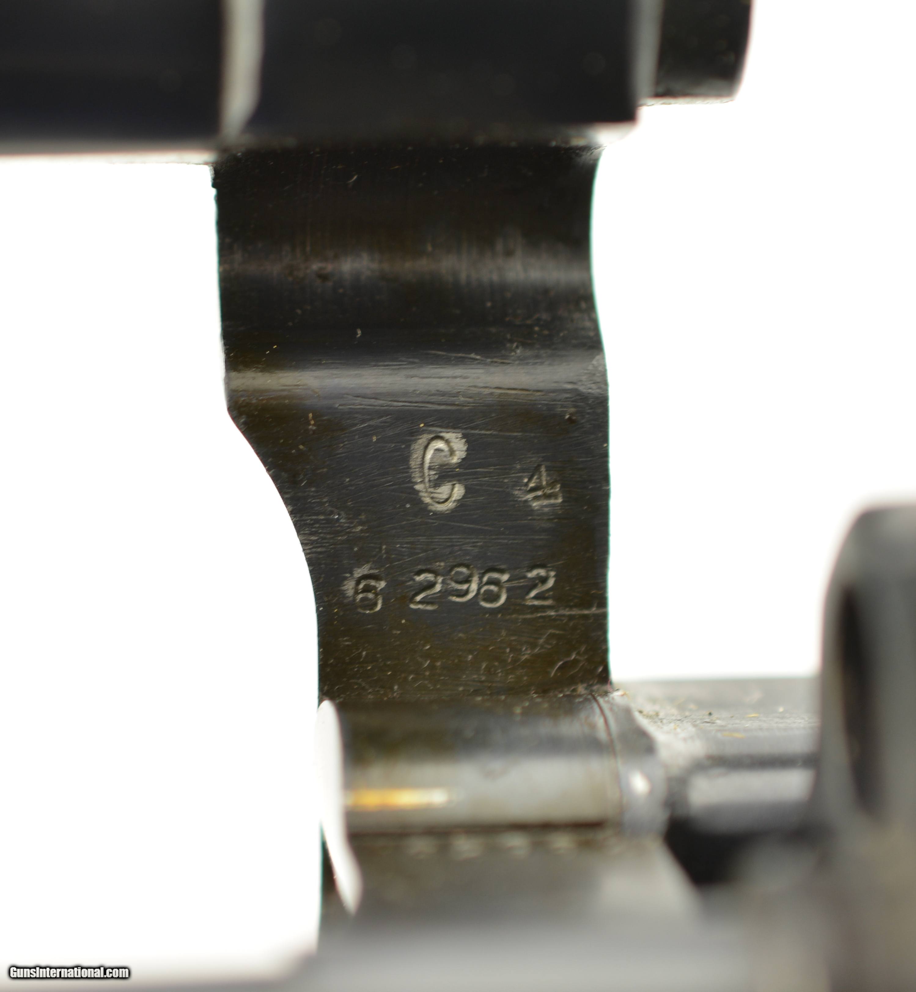 Description: Serial #S972728, .38 Special, 6" barrel with an excellent, bright bore. This is a 1945-made revolver that has matching numbers on the frame, barrel, cylinder, yoke, and extractor, with the metal retaining 98-99% of the original blue finish, with some traces of mild silvering at the muzzle and other high edges, as well as along the ejector rod, and a mild turn-ring on the cylinder. The hammer and trigger retain about 90-92% of the original color case-hardening, with some gray along the bearing surfaces. The diamond-center grips are numbered to the gun and are in very good condition with some flattening of the points, as well as a crack on the inside upper corner of the grip strap as well as some impact blemishes at the butt (See Photos). Included is an original gold box with the proper end marking for this gun and no serial number. This is a splendid example of a scarce post-war M&P Pre-Model 10 revolver, and would make a great addition to any collection. FFL or C&R SOLD Curio/Relic: Yes Manufacturer: S&W Model: M&P Serial Number: S972728 Caliber Info: .38 Spl Gauge Info: .38 Spl |