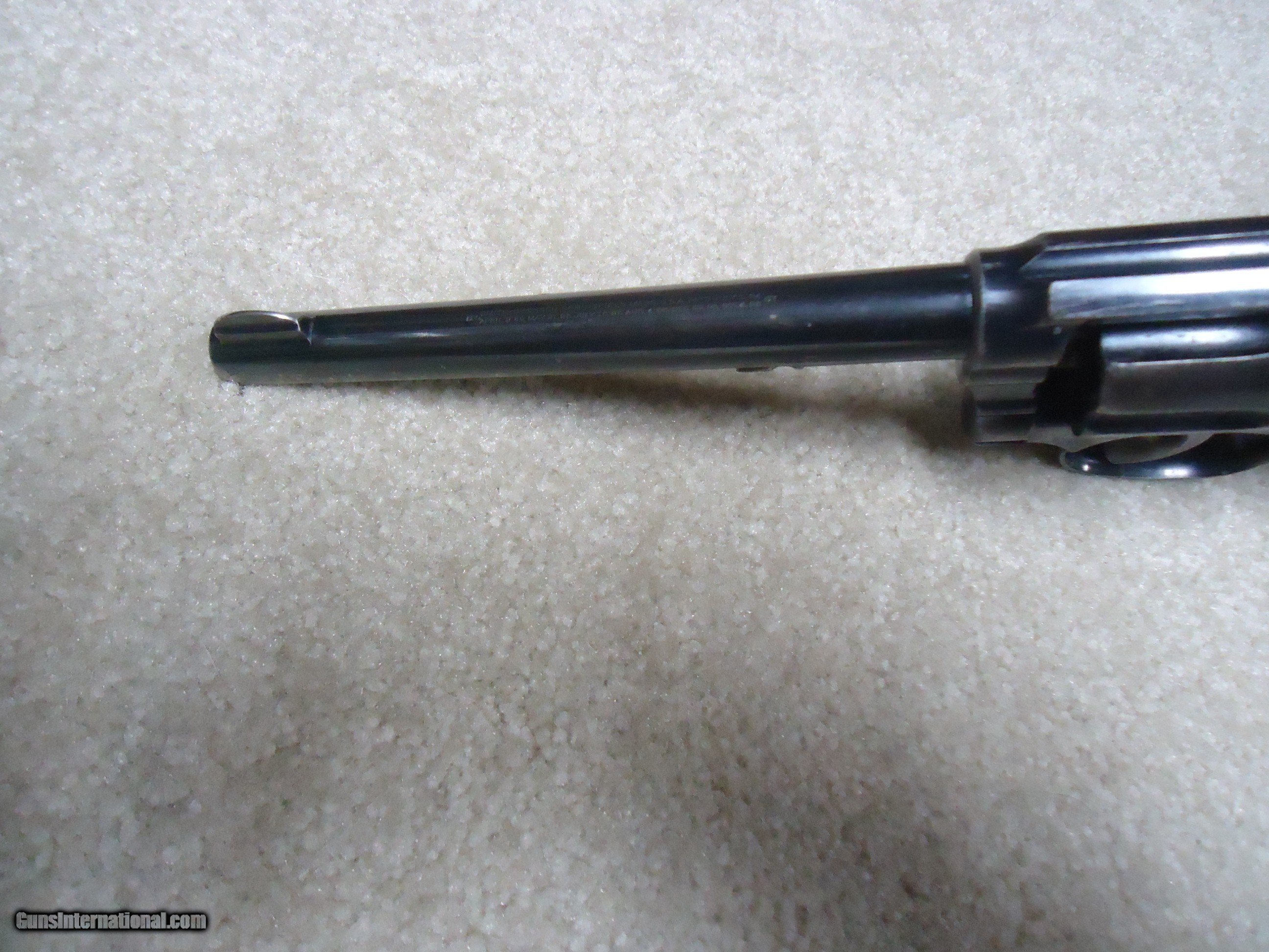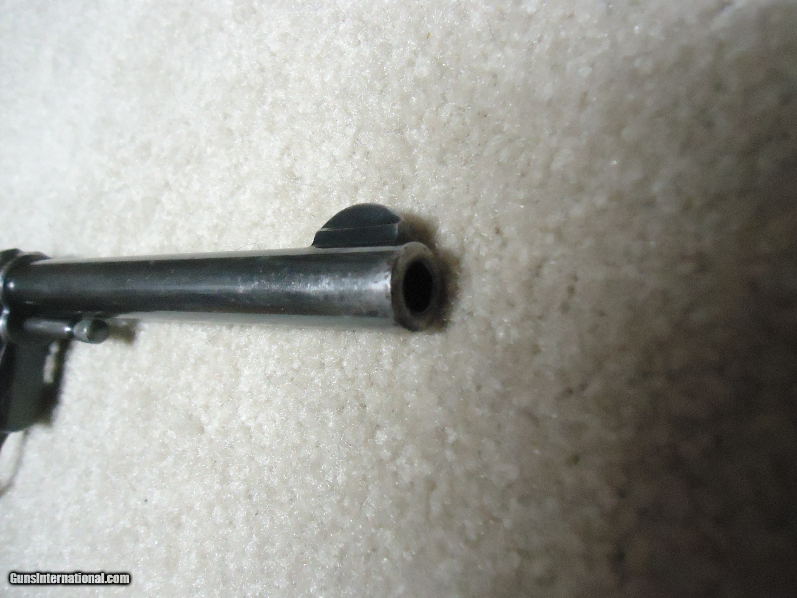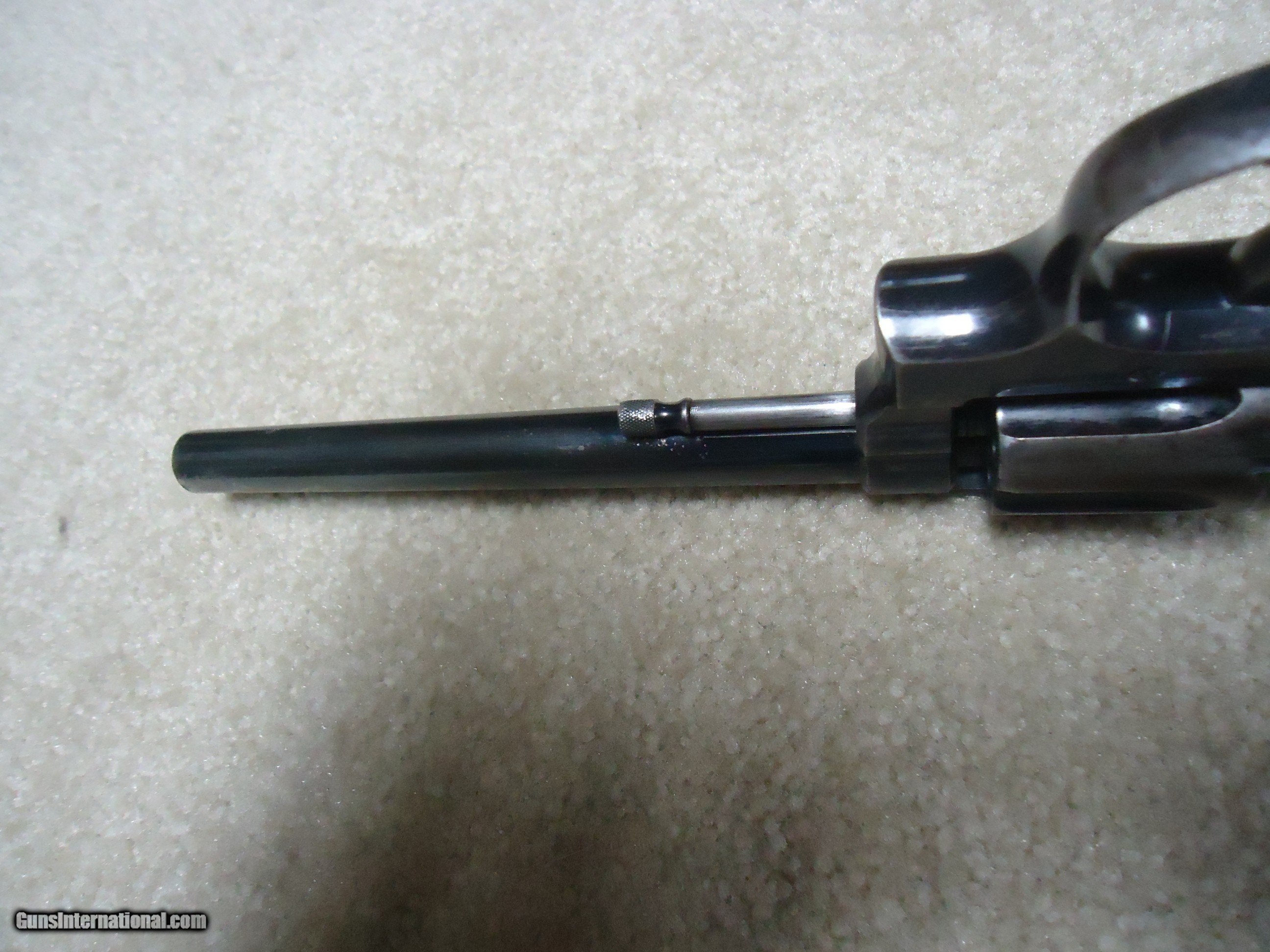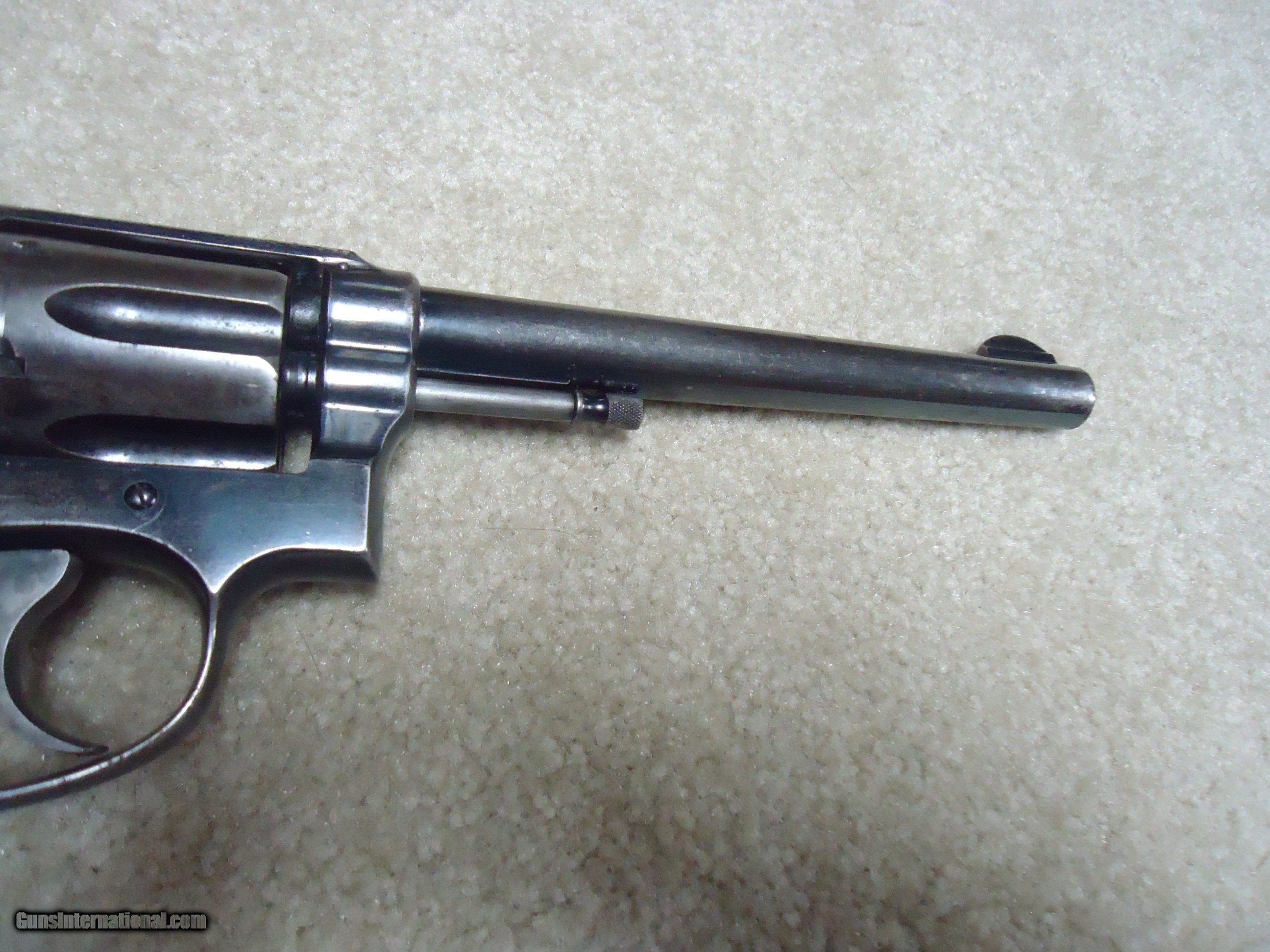 Description: SELDOM SEEN, EARLY MODEL 1899 .32-20 FIRST MODEL HAND EJECTOR, #11XX, MADE 1899-1902. This was the first of the famed Military & Police (M&P) line that continues to this day. Easily identified by the fully exposed and non-locking stud to the barrel ejector rod, the First Model was made in a quantity of only 5311 at which time the next model replaced it that did have the ejector rod connected to the barrel as on all models to the present time. The First Model was offered in .32-20 and .38 Special only. The .32-20 was mainly for outdoorsmen/frontiersmen who paired this revolver with an identically chambered rifle or carbine of the same caliber. As such, most of these early .32-20s saw some pretty heavy usage in the outdoors. When encountered, they often display hard use and often abuse. This example with 6 1/2" barrel and blue finish has matching numbers on the butt, cylinder, barrel and inside the right grip at the top portion. This model was only made in round butt configuration and the early hard rubber grips have a light and small patent merking at the lower edge on the left panel- with any wear this marking disappears. This example retains the grip patent marking. Overall, the blue is fine with thinning a little on the sides of the barrel, grip straps and on the outer portion of the cylinder- typical handling and holster wear. Exc. screws and markings including the top barrel address and correct patent date ending in '98 along with "32 WINCHESTER CTG" on the left side of the barrel. Nice case color on the hammer and trigger sides. Front sight has NOT been filed or altered. The action is excellent with very solid cylinder lock up. Bore is excellent and bright. One of the better ones I've seen in a long while. A difficult to find 120+ year old S&W and one of the most significant and historical introductory models. SOLD Curio/Relic: Yes Handgun Caliber: .32-20 Winchester (.32 WCF, .32-20 Marlin, .32 Colt Lightning ) Manufacturer: SMITH & WESSON Model: FIRST MOD. 32-20 H-E Serial Number: 11XX Barrel Length: 6 Condition: FINE Bore Condition: EXCELLENT |
