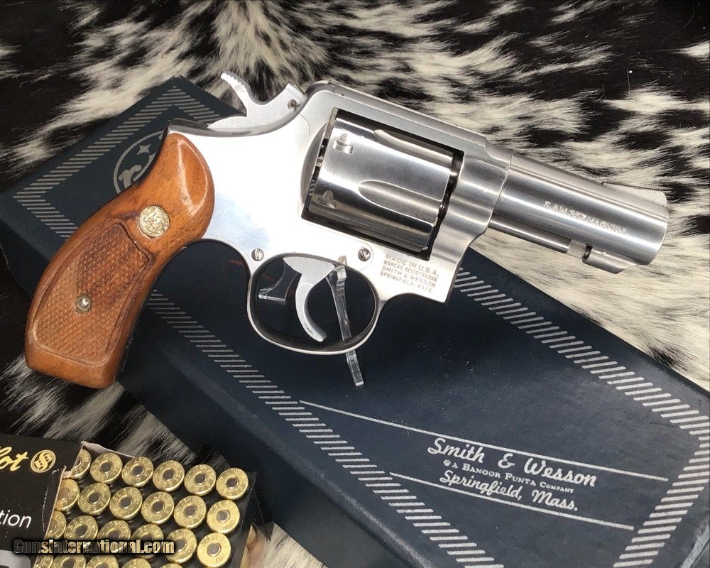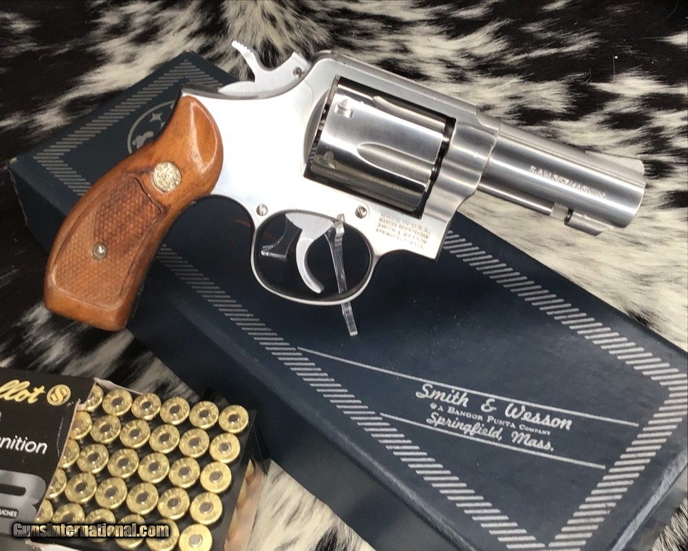 Description: Smith and Wesson K Frame model 65-3 wearing a 3 inch heavy barrel, fixed sights and round butt Magna grips with medallions. Hard to find, great to own model stainless carry gun that is in that " If I could only own one revolver" category. This three inch model 65 is in very good condition with some light carry wear. 95% condition or better. Comes in Blue Smith and Wesson two piece box with no sticker or numbers. Shiney bore with strong rifling. Tight action with solid lockup. Fixed sights that won't dig into your jelly-roll on long days. Love this model in 3 inch 65, one of Smith and Wessons best carrry models hands down. Add 3% for paying with credit card. God Bless America from a proud American, and a Viet Nam Vet , thankful for our freedoms.. paid for by the Blood ,Sweat and Tears of our brave men and women in uniform. Ten Below Firearms is a Veteran owned and operated business. We specialize in out of production models of high quality firearms. We love to ship! If you are out of state or can't make it to our store, just give us a call! Handguns normally ship for $30 and Long guns for $40 to $65 for extra length long guns. That's 2-3 day USPS Priority shipping, Delivery conformation and with tracking number. Optional Postal insurance is additional $1.70 per $100 and highly recommended. We are OPEN BY APPOINTMENT ONLY FOR IN PERSON VISITS SOLD Handgun Caliber: .357 Magnum Manufacturer: Smith and Wesson Model: 65-3 Serial Number: ADH6865 Barrel Length: 3 inch Condition: Very good Metal Condition: Very good Wood Condition: Very good Bore Condition: Very good Action: DA/SA Finish: Stainless Sights: Fixed Manufacture Date: 1983 Case: Box Item Location: Mn |