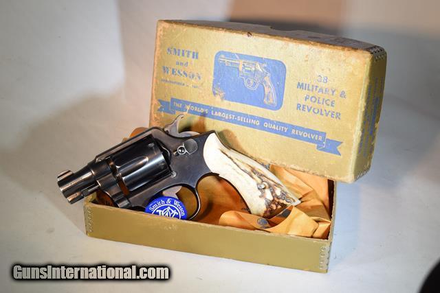 Description: Hello, Vintage Pre 10 MP 38 Special 2 inch in original Gold Box C-1945. Rock solid revolver shows almost no wear, with half moon front sight and pinned barrel. Square butt grip. Smith and Wesson Gold box in good condition. These pre 10 2inch models are a scarce model espesially in this condition. Pictured wearing Genuine Sanbar Stag grips. Stock Diamond Walnut grips available. MN buyer needs MN state ID and Permit. Out of MN buyer pays $30 shipping to local FFL. Hi, All of the firearms displayed on My Store and more will be displayed for sale at the The Askov-Pine Gun Show . To be held on Feb 10th-11th, 2018 in Askov, MN. This Askov gun show is held at Askov-Pine County History Museum and hosted by AC Expos. All federal, state and local firearm ordinances and laws must be obeyed. Ten Below Firearms is a Veteran owned and operated home based business. We specialize in out of production models of quality firearms. We love to ship! If you are out of state or can't make it to Andover, just give us a call! Handguns normally ship for $30 and Long guns for $40.. That's 2-3 day shipping, Delivery conformation and with tracking number. Insurance is additional $1.27 per $100 and recommended. We are OPEN BY APPOINTMENT ONLY On Monday through Thursdays only.. call ahead 651 303 7769 or Please email questions SOLD Curio/Relic: Yes Manufacturer: Smith and Wesson Model: Pre-10 M+P 38 2 inch Serial Number: S Caliber Info: 38 spec Chambers: 6 Condition: very good to fine Metal Condition: very good Wood Condition: very good Bore Condition: very good Barrels: 2 inch Action: da/sa |