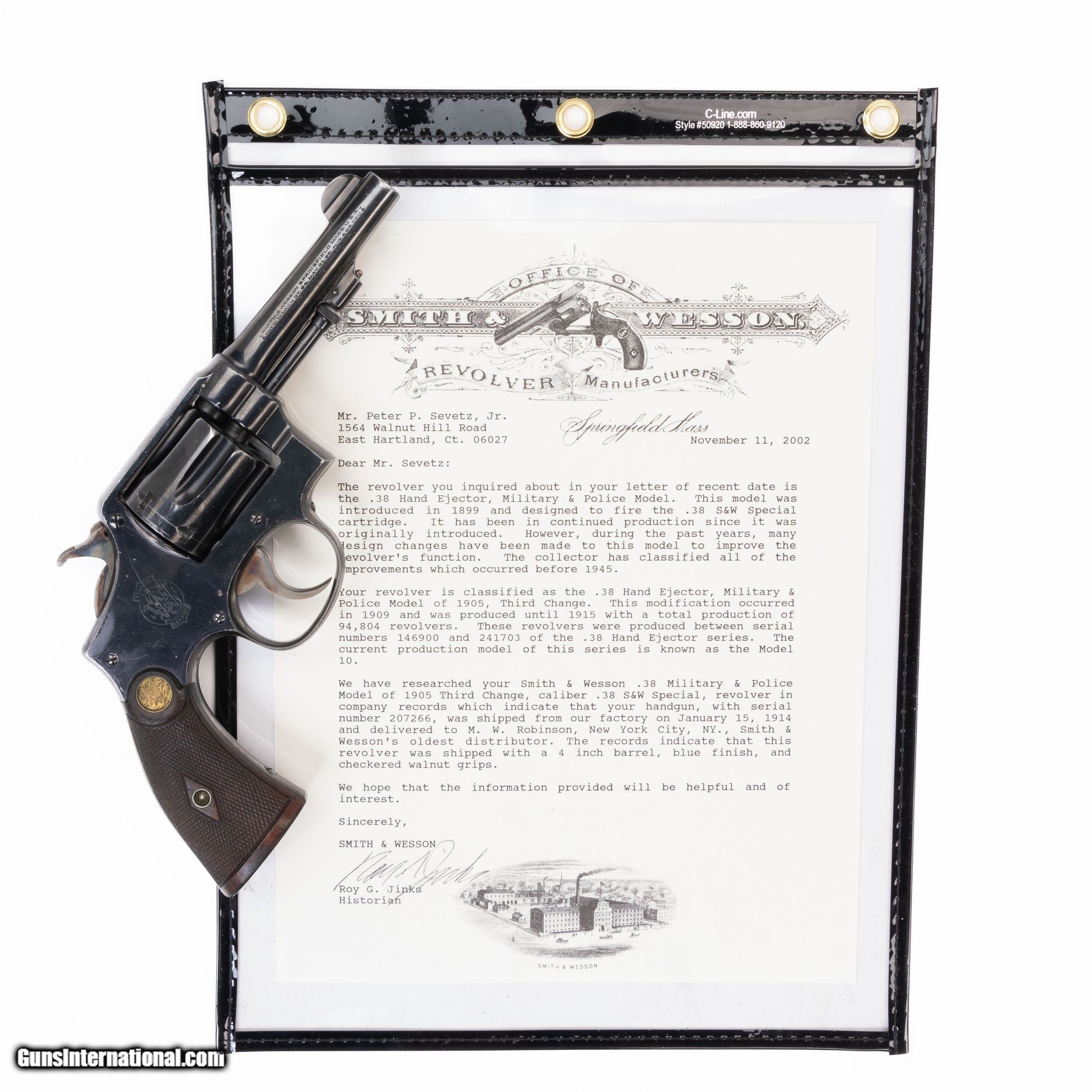 Description: Guns Listing ID: 475190 This Smith & Wesson revolver comes with a S&W historical letter from 2002. The letter states this M&P was shipped from the S&W factory on Ja. 15, 1914 and delivered to M. W. Robinson, NY, S&W‚‚s oldest distributor. Wear marks throughout from age and decades of use. Still very tight and a lot of life left in her!! Get the best bang for your buck when you get a Certified Used Firearm . When you see the Certified Used stamp on any of our firearms, you can be confident that you’re getting exactly what you want – a gun only in very good to excellent condition and held to the highest quality standard. All Certified Used Guns come with a ‘no questions asked’ return policy . PLUS, ALL CERTIFIED USED GUNS SHIP FREE! SOLD Curio/Relic: Yes Manufacturer: SMITH & WESSON Model: 1905 HAND EJECTOR MILITARY & POLICE Caliber Info: .38 SPL Condition: Used - Non-Certified Barrels: 4.00 Action: REVOLVER Finish: BLACK Weight: 1.8 |