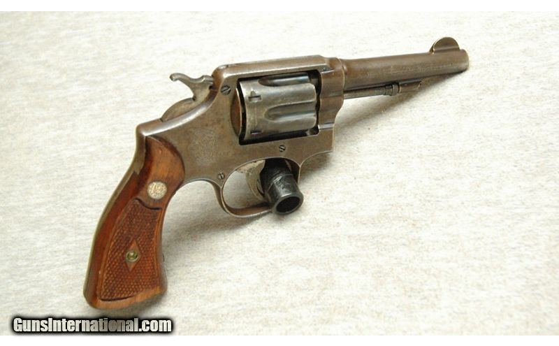 Description: S&W .38 M&P HE 3rd Model Revolver. Fair condition metal, finish wear, light corrosion. Wood grips are in very good condition. Manufactured 1909 to 1915. .38 Special SOLD Curio/Relic: Yes Chambers: Revolver Metal Condition: Fair Wood Condition: Grips are very good Bore Condition: Bright Barrels: 4 Triggers: Double and single action Butt Pad: S&W wood grips Sights: Fixed sights Item Location: La Vista, NE |