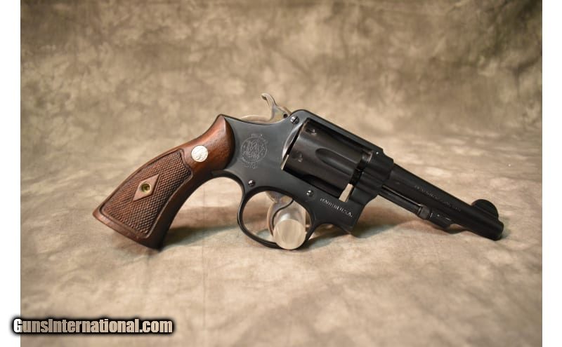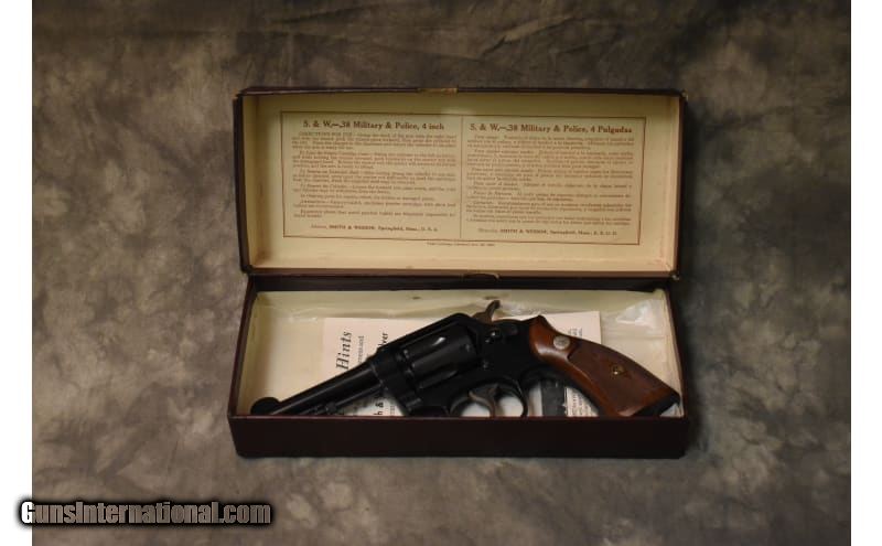 Description: This revolver is in great condition with its factory box and pamphlet. There seems to be little to no signs of use other than some of the bluing being worn off on the ram rod piece and the crown of the muzzle. There is also some minor surface rust on a small part of the cylinder. Over all the bluing and the grips are in great condition and the factory box is still in-tact it would make a fine addition to anyone's collection. .38 S&W Special SOLD Chambers: .38 S&W Special Metal Condition: Good Wood Condition: Good Bore Condition: Clear & Bright Barrels: 4 inch Triggers: Double Action/Single Action Weight: 1lb 13oz Sights: Iron Sights Item Location: Springfield, MO |