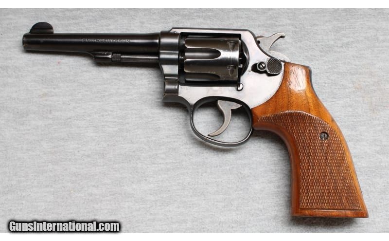 Description: Very good condition, some finish wear, small nicks and scratches. .38 Special SOLD Chambers: Revolver Metal Condition: Very good Wood Condition: Grips are very good Bore Condition: Bright Barrels: 5" Pinned barrel Triggers: Double and single action Butt Pad: Wood grips Sights: "Fixed rear channel, blade front sight Item Location: La Vista, NE |