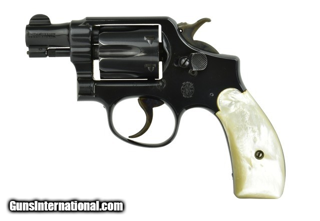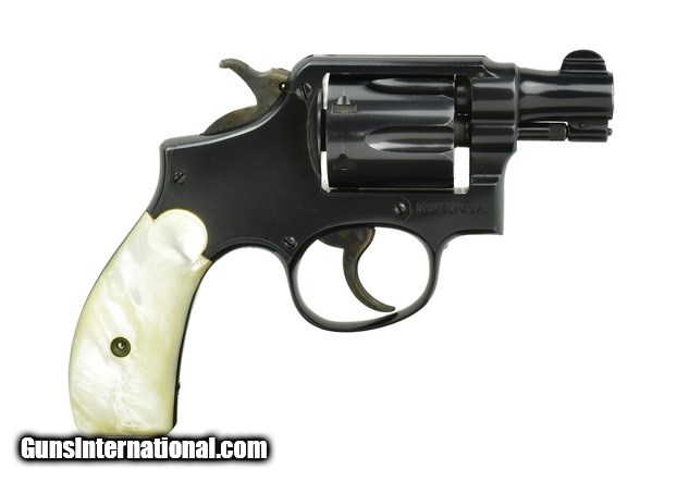 Description: Smith & Wesson M&P .38 Special caliber revolver. Pre-war snub with pearl grips in near excellent condition.
