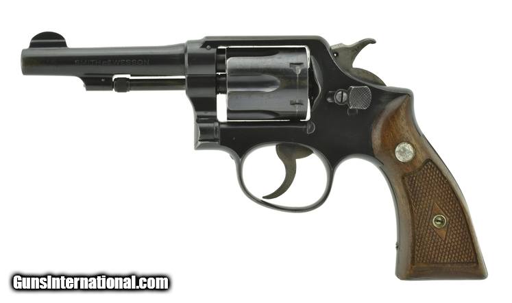 Description: Smith & Wesson M&P 38 Special caliber revolver. 4” Blue 5-screw pre-model 10. Has “S” serial number, late 1940’s vintage. Very good condition.
