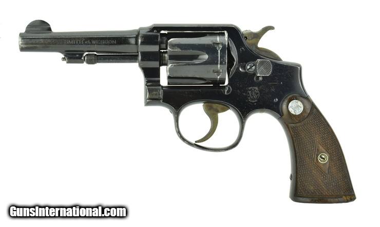 Smith & Wesson M&P .38 Special caliber revolver. 4” Blue pre-war revolver. Has about 80% blue with even wear throughout. The bore is good with light pitting.