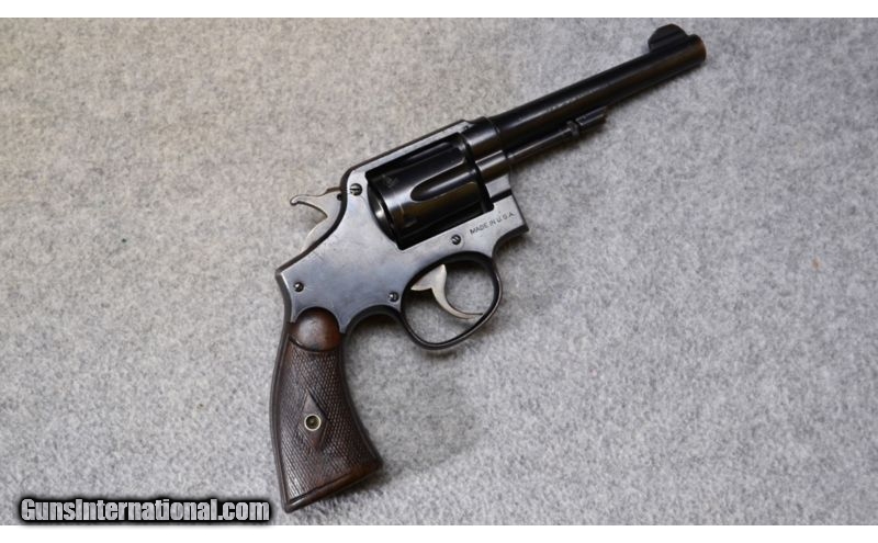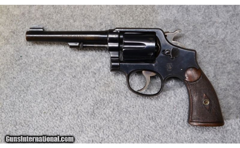 Description: Smith and Wesson revolvers are perhaps the most popular swing out cylinder revovlers to be released on the market. This example seems to be a Military & Police version making it a Model 10. This example is in good conditon with some scratches and wear. SOLD Caliber Info: .38 Special Chambers: 6 shot revolving cylinder. Metal Condition: Good with handling, wear marks, and light pitting. Wood Condition: Good with light to medium handling marks. Bore Condition: Good with light wear marks. Barrels: 5 inch. Triggers: Single and Double action. Stock: Textured wood grip. Weight: 30 ounce. Sights: Fixed rear iron sight and bladed front sight. Item Location: Hammond, IN |