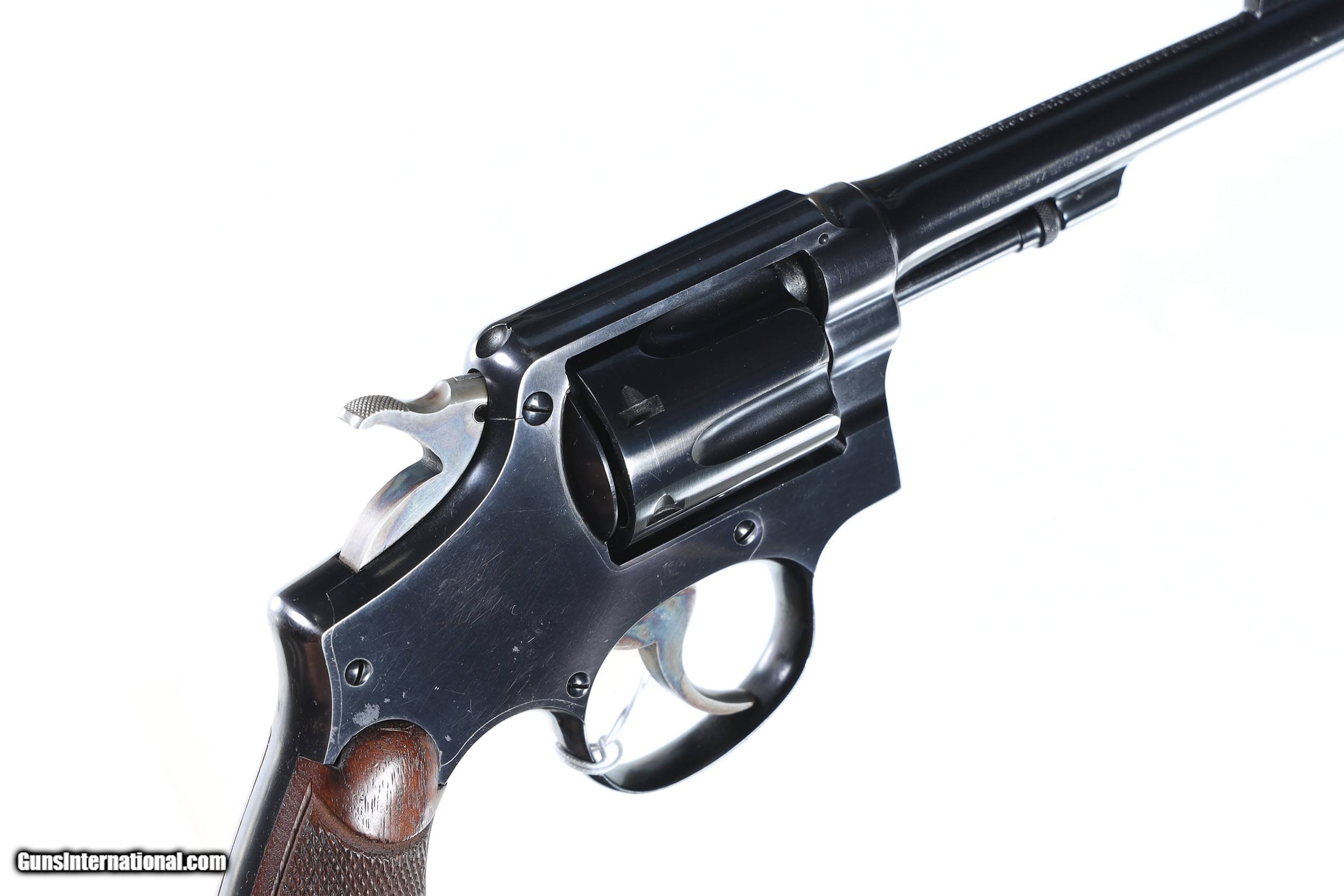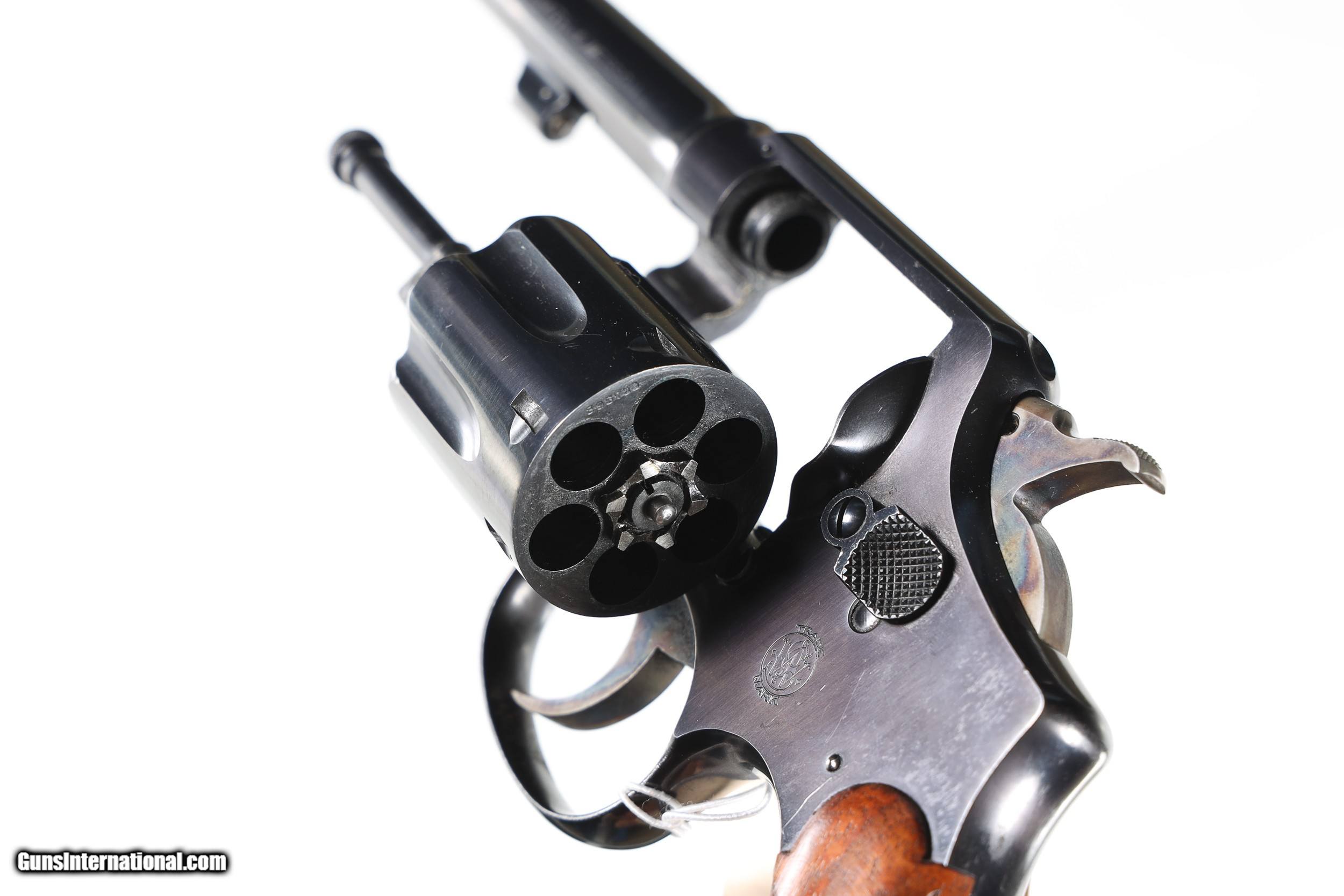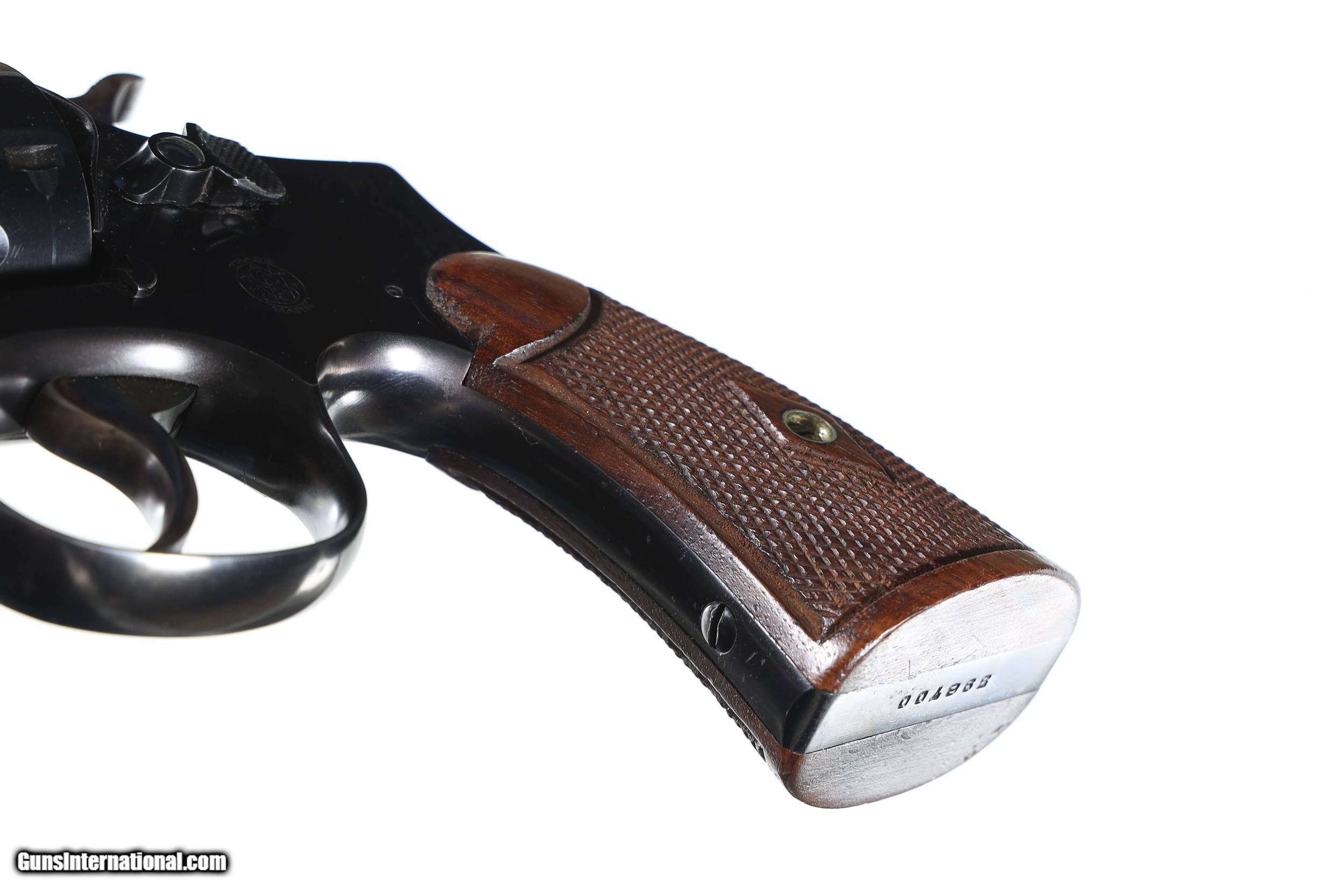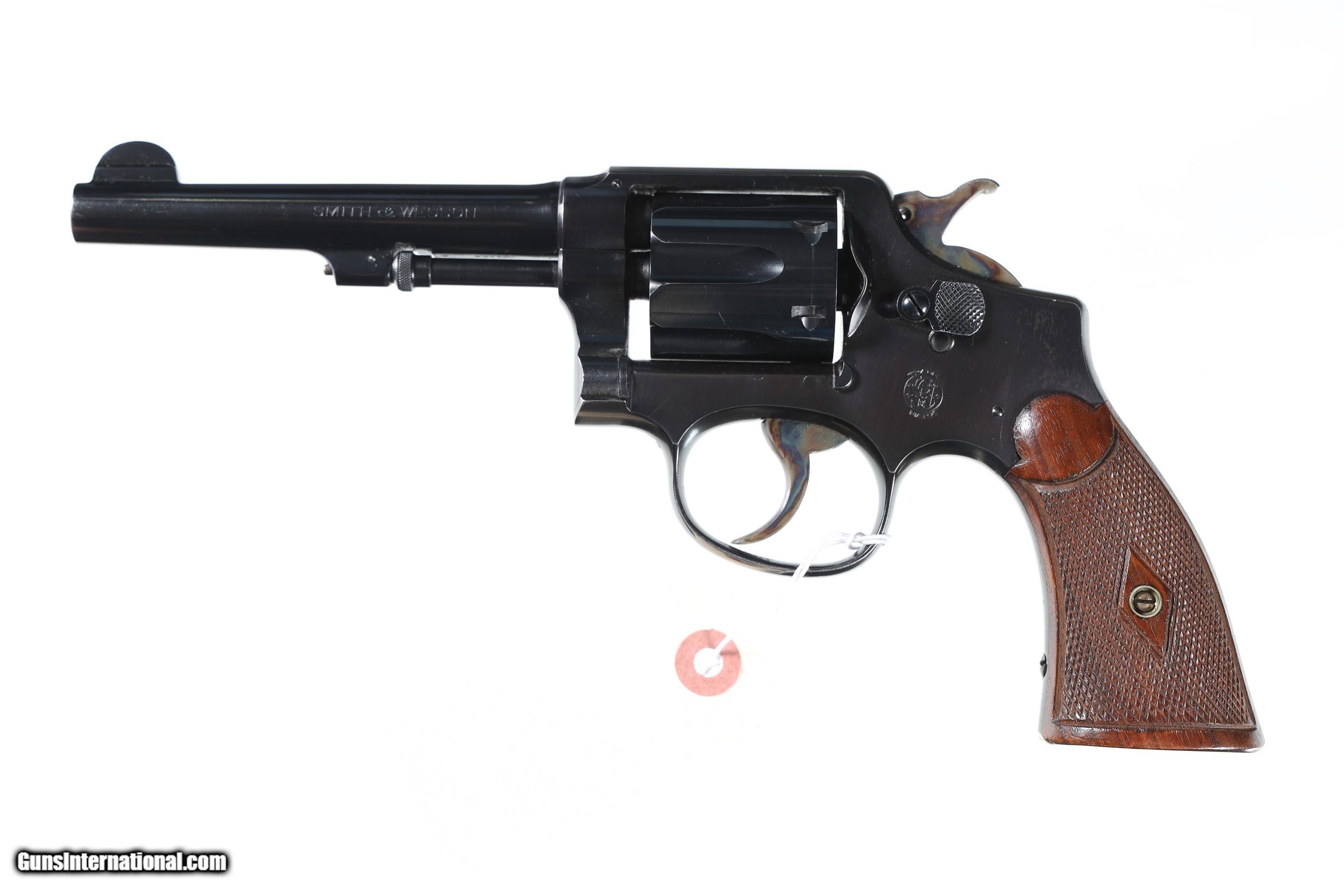 Description: Excellent overall condition with faint cylinder drag line. 5 screw frame with original finish. Manufactured from 1915-1942. Free Shipping, NO Credit Card Fees! SOLD Manufacturer: Smith & Wesson Model: M&P Serial Number: 396700 Caliber Info: .38spl. Barrels: 5 |