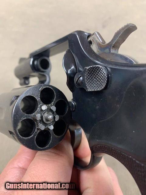 Description: An excellent original condition Smith & Wesson M&P Revolver with a factory 2 inch barrel. This .38 Special Revolver has an excellent original bore and perfect chambers. Made when revolvers were quality items requiring fitting by seasoned gunsmiths at the factory. No mims parts or cheap stuff on this revolver. Fitted with premium Pachmayr rubber grips as shown. SOLD Handgun Caliber: .38 Special |