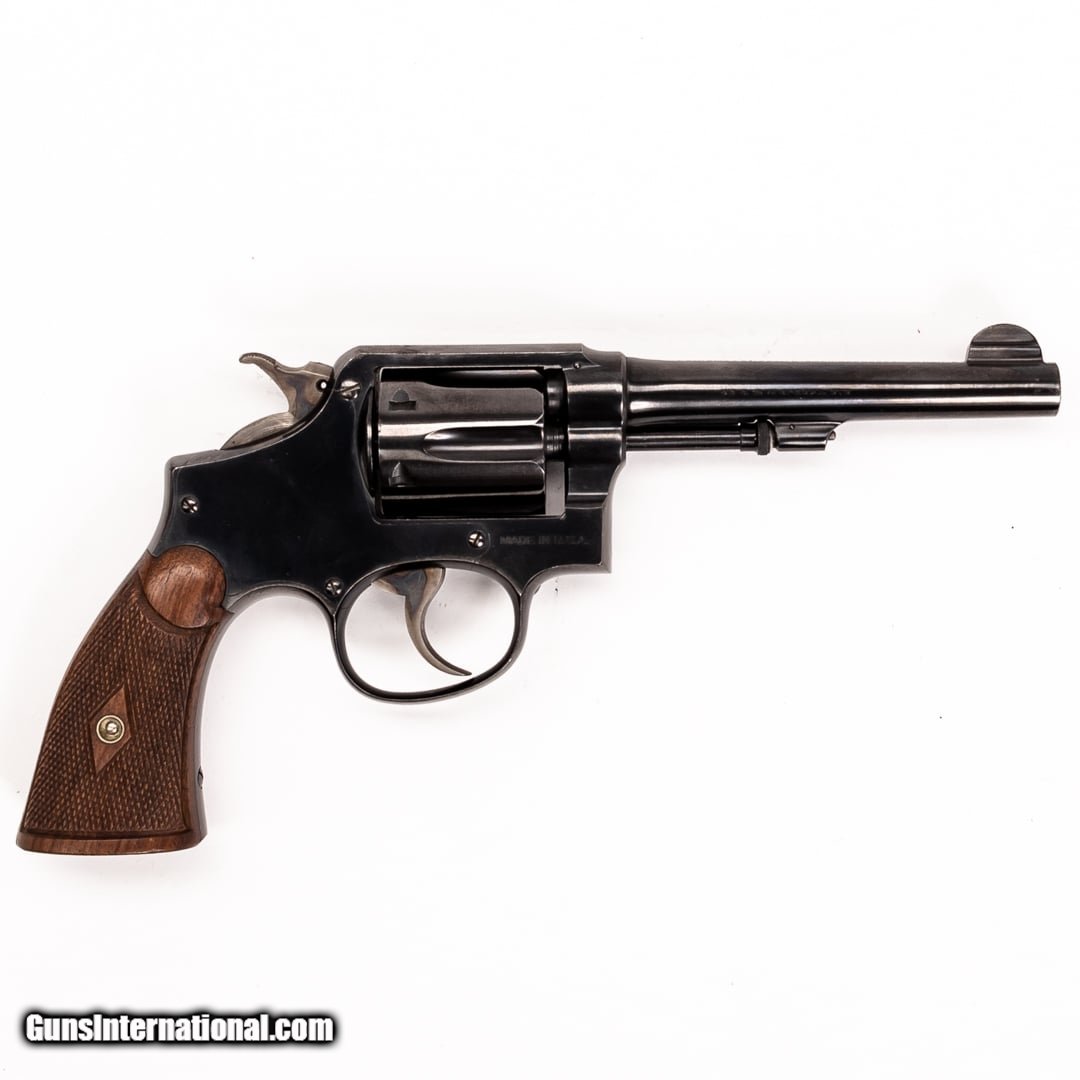 Description: Guns Listing ID: 343371 This Smith & Wesson Model 1905 M&P (Model 1905 Military and Police) is a classically styled 6-shot revolver chambered in .38 Special. This revolver is the third iteration that Smith & Wesson developed. The design was originally introduced in 1905 and was manufactured for nearly four decades. A beautiful piece of work, this revolver is often sought by collectors. There is some light rust. Serial number: 411458 SOLD Manufacturer: SMITH & WESSON Model: MODEL 1905 M&P Caliber Info: .38 SPL Condition: Used - Certified Barrels: 5 BARREL Finish: BLUE |