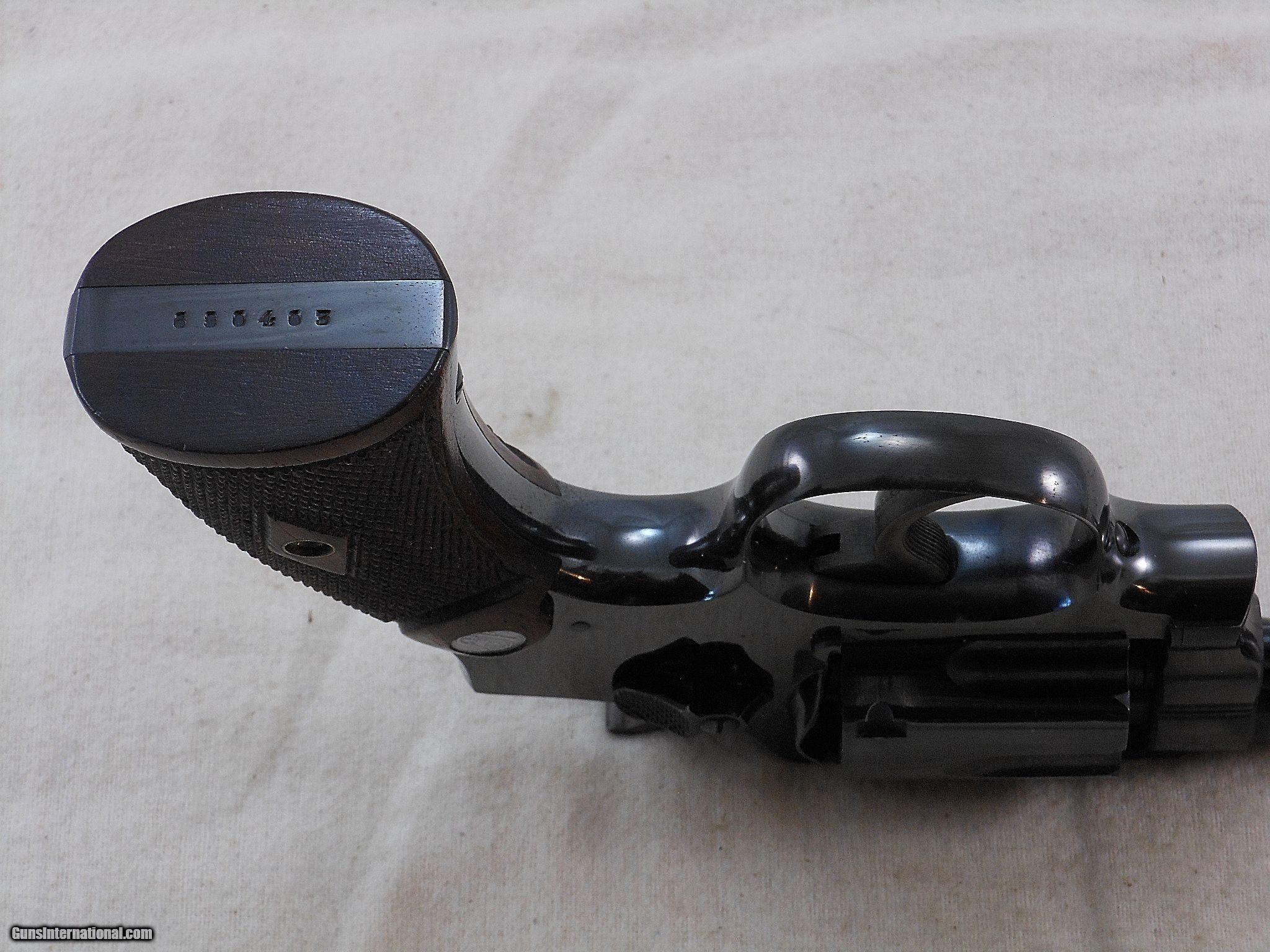 Description: For Best Results Always Call First. This pistol's serial number places the pistol to the Roaring 20's. The serial number is 680403. These 4th change revolvers were produced between 1915 to 1942 beginning with serial number 241704. The original grips are serial numbered to this pistol. All the parts are also serial numbered to the frame. The hammer and trigger have the patent information on the back. This pistol is a 6 inch 38 Smith & Wesson Special. The revolver is in almost unfired condition! The blued finish is in the high polish early style mirror finish. There is an ever so light drag line between the bolt stops. The grips are in minty condition. The original box is serial numbered in pencil on the bottom of the box. This box is in very fine condition and is intact with no repairs. This style of box came out in the 20's and is a patent display box. This is a very stunning early Smith & Wesson with it's original display box. This is the kind of pistols that serious collectors strive for to upgrade their collections. Search for hlvfineguns on google. Curio&Relic [3] BBHK F. No 313 -17 SOLD Curio/Relic: Yes Manufacturer: Smith & Wesson Model: 1905 Military & Police Serial Number: 680403 Caliber Info: 38 Special Bore: Very Fine Chambers: Very Fine Condition: Almost New Barrels: 6 Inch Action: Double Action Triggers: Standard Finish: High Polish Blue Sights: Standard Manufacture Date: 1920,s Item Location: CR 686 |