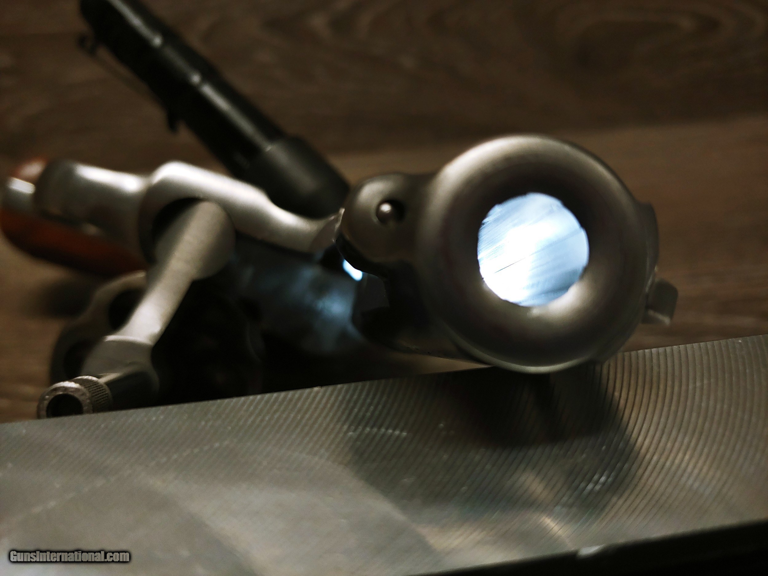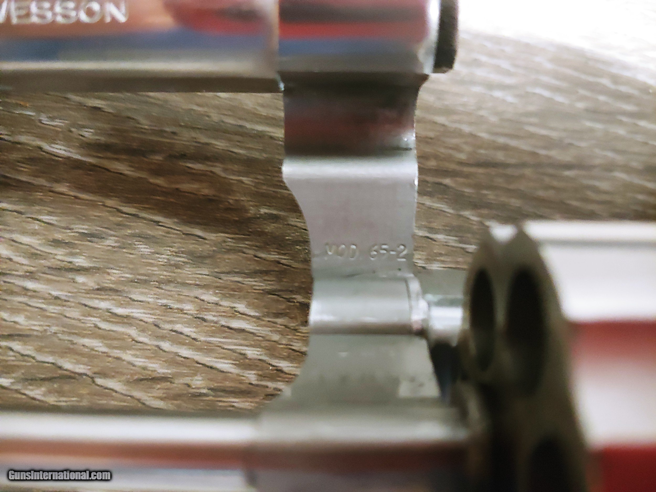 Description: Model 65-2 Military & Police in very good condition. .357 magnum with 3 inch heavy barrel and combat trigger in stainless steel. Metal has some slight surface scratches and cylinder drag line. Original wood grips in excellent condition.Bore is bright and cleanes with correct box, paperwork and cleaning tools. Manufactured in 1981 SOLD Handgun Caliber: .357 Magnum Manufacturer: Smith & Wesson Model: 65-2 Serial Number: 7D51453 Barrel Length: 3 Condition: Fine Metal Condition: Very Good Wood Condition: Excellent Bore Condition: Excellent |