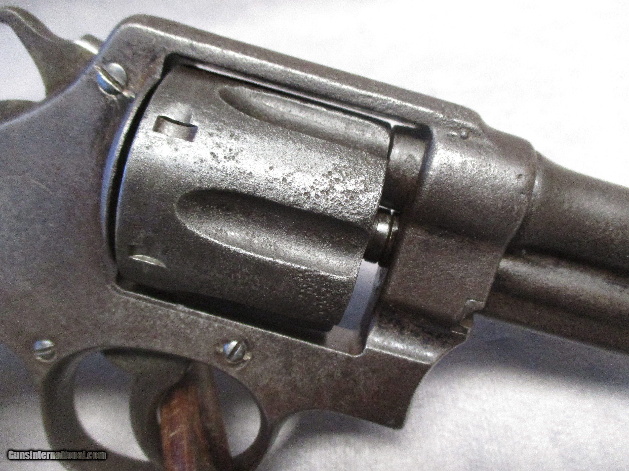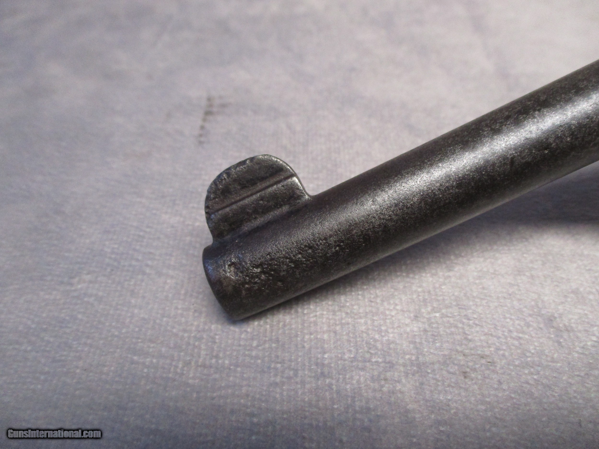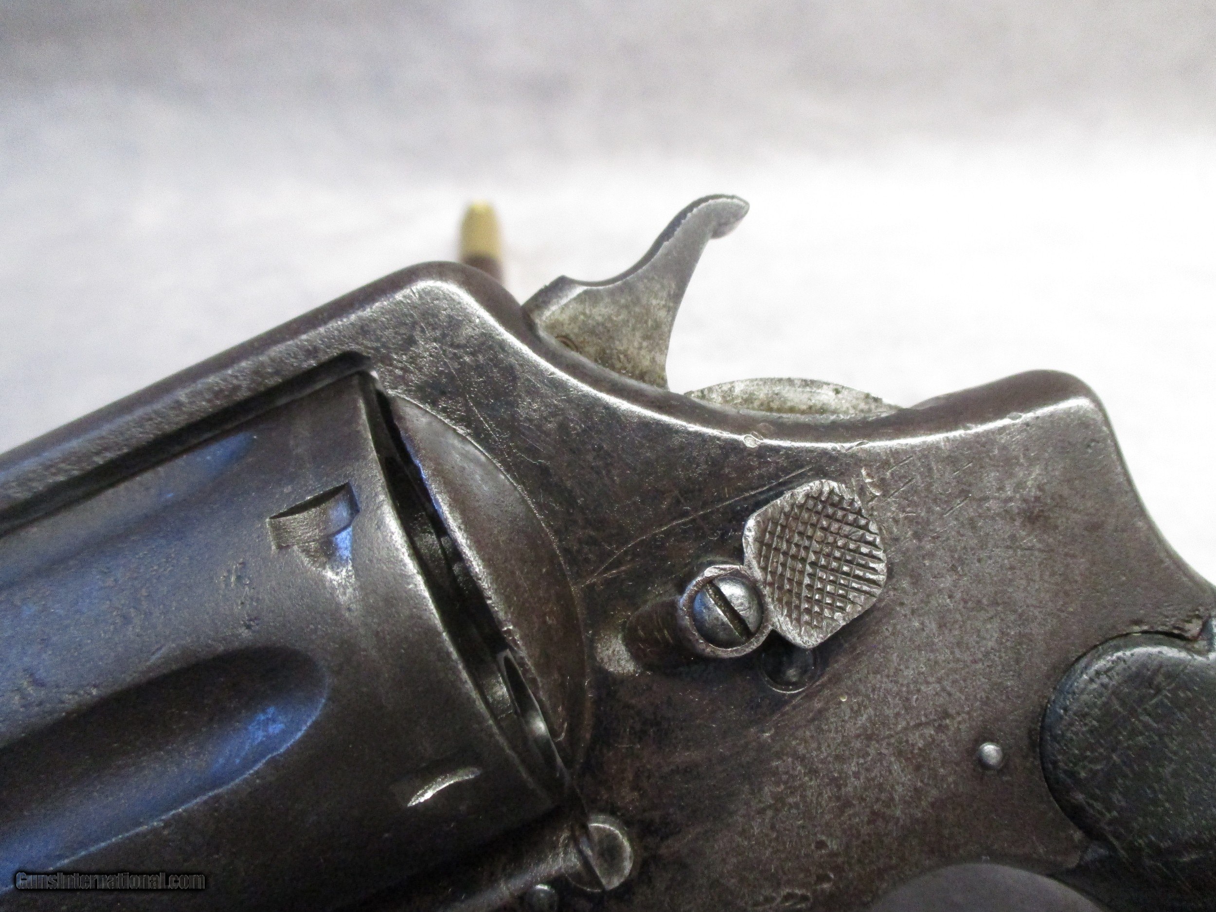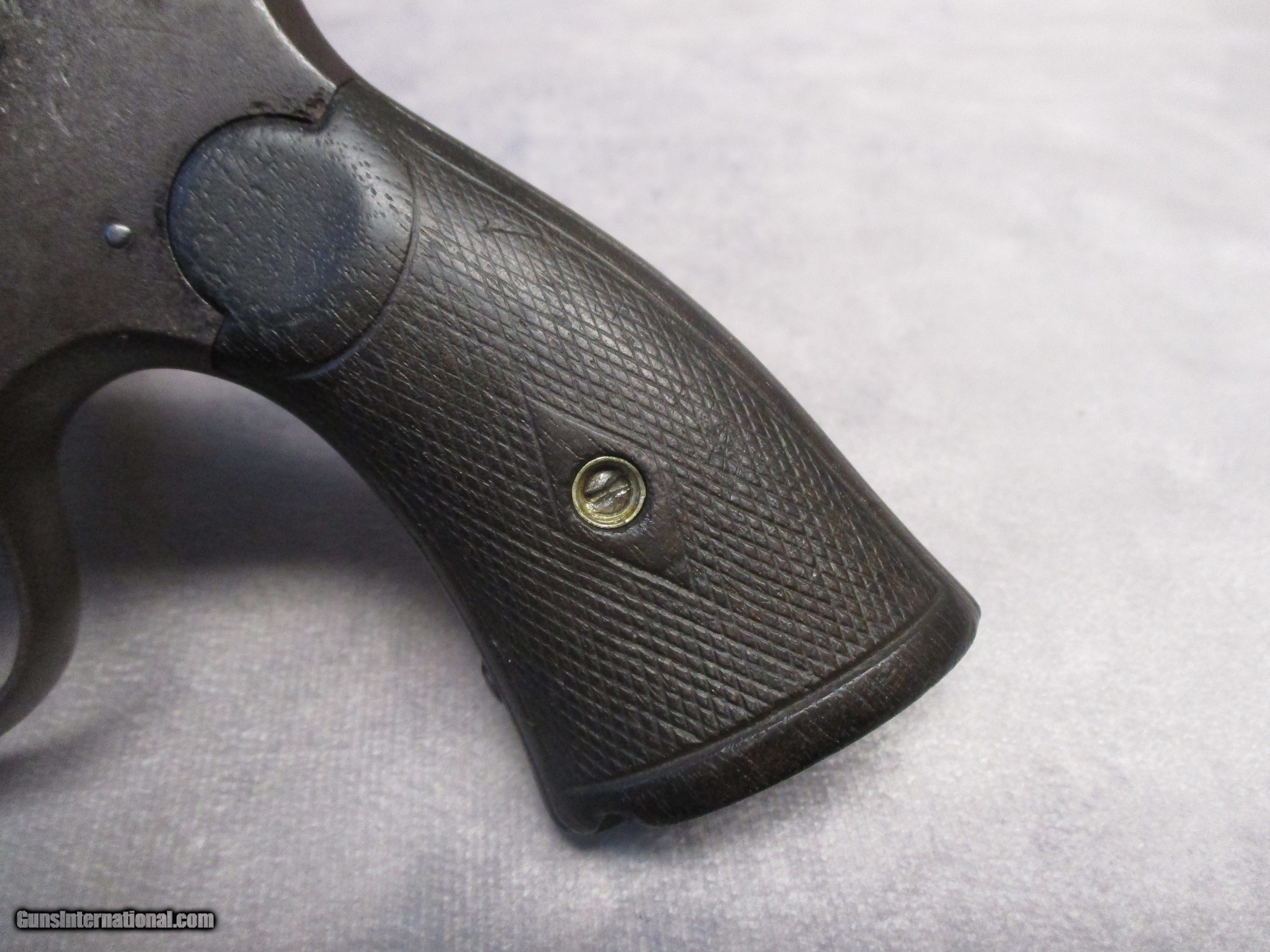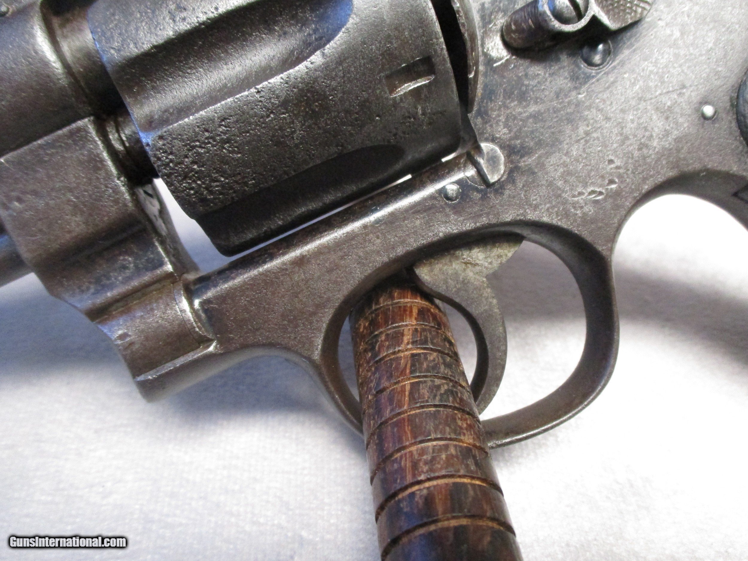 Description: This is perhaps one of Smith & Wesson’s most historically important models. Although the technical name is .44 Hand Ejector, 1st Model, this revolver was and is more commonly known as the New Century or Triple Lock. The New Century effectively introduced what we know today as the N frame. All S&W large frame revolvers share their origin in the New Century design, such as the .38/44 Hand Ejector/Models 20/23 in .38 Special, the .357 Registered Magnum/Model 27/327/627 in .357 Magnum, the Highway Patrolman/Model 28 also in .357 Magnum, the Models 57/58/657 in 41 Magnum, the Models 21 and 24 in .44 Special, the Model 29/629 in 44 Magnum, the British .455 Hand Ejector, the U.S. Army’s Model 1917 and Models 22/25/625 in .45 ACP, with some Model 25’s chambering the famous .45 Long Colt. The New Century is a double action revolver built on a square butt N frame with five screws. It came with a pinned barrel in a length of 4-inch, 5-inch, 6-1/2”, or 7-1/2”. What sets the New Century apart from its descendants is the third very distinctive lock at the yoke, which is where the nickname “Triple Lock” comes from. It was this revolver model that the famous Elmer Keith used to test his high pressure .44 Special loads to prove that S&W N-frame revolvers could handle high pressure loads. His work ultimately led to the creation of the .44 Remington Magnum cartridge. This Triple Lock’s features include: a 6.5-inch 1/2-lug barrel, square butt frame, 0.312-inch smooth trigger, .265-inch checked hammer, fixed sights, and the original checked walnut non-medallion grips. It is chambered for the .44 Special the predecessor of the .44 Magnum. The letter from S&W historian Roy G. Jinks indicates this revolver was shipped from the factory on September 9, 1910. Interestingly, the serial number, according to the Standard Catalog of Smith & Wesson, 4th Edition, indicates this gun was manufactured in 1908. It should be remembered though, that in those days, a revolver might be stamped with a serial number but then sit in the factory for a while before being shipped out. It was shipped to E.K. Tryon Co. in Philadelphia, PA. It ended up as the duty gun of Deputy Sheriff George Mayes Stephenson originally from Anahuac, TX. He served as the deputy sheriff for Chambers County, Texas. Based on research by the Chamber’s County Historical Society, it has been determined that he participated in at least one gunfight, and was well respected. Sadly, on the night of May 9th, 1936, while on duty, George’s horse threw him, resulting in a fractured skull and a brain injury. He passed away the next day at the age of 57. Interestingly, this event also affected his revolver as well. When George hit the ground, he did so on the side of his body that his revolver was holstered on. The cylinder took the brunt and one of the chambers was affected. When attempting to load all six cylinders with ammunition, only 5 rounds will fully seat, the sixth will not. As can be seen in the photos, the pistol has had a rough life since then. Due to its age, shooting this revolver isn’t recommended. The original bluing has turned to a heavy patina, and the exterior exhibits severe pitting. The bore is also pitted. Mechanically, the cylinder still rotates correctly. The serial number is still visible on the bottom of the pistol grip and the back of the cylinder. The patent stamps on the top of the barrel are worn to some extent due to the pitting. Overall, the revolver’s condition is not surprising given the time it was made and well as its use as a duty gun. It is, however, very interesting to see a S&W revolver with only a 3-digit serial number. Included are the S&W Letter of Authenticity, a copy of George’s death certificate, and a card written by George’s granddaughter, Mrs. Joanne H. Neubauer. SOLD Handgun Caliber: .44 Special, .44 S&W Russian Manufacturer: Smith & Wesson Model: New Century Triple Lock Serial Number: 232 Bore: Rifled Chambers: 6 Ejectors: Manual, simultaneous 6-round ejection Condition: Fair Barrel Type: Tapering Action: Double/Single Action Triggers: .312” (7.94 mm) smooth trigger Stock: Checkered wood Finish: Patina Sights: Round blade front sight, square notch rear; Sight Radius 5.75 inches (146 mm) Manufacture Date: Shipped from factory Extras: See description |