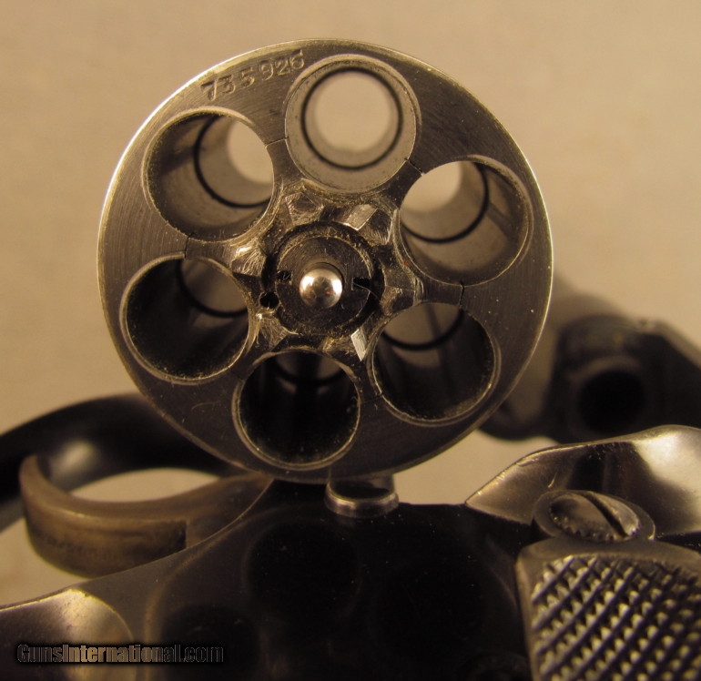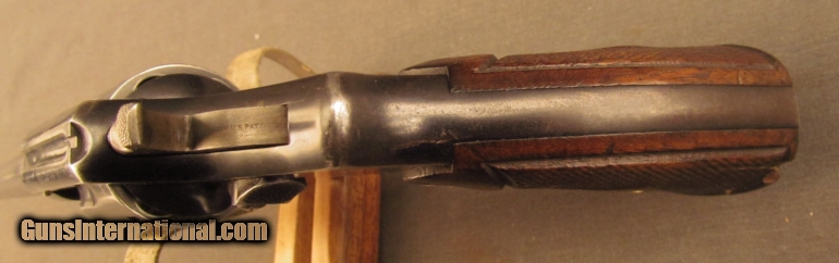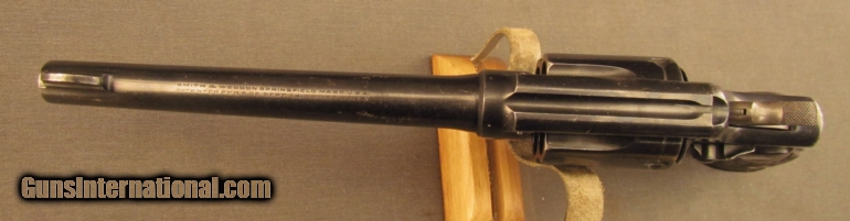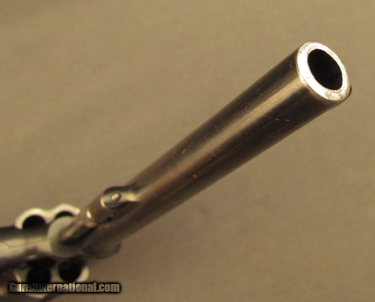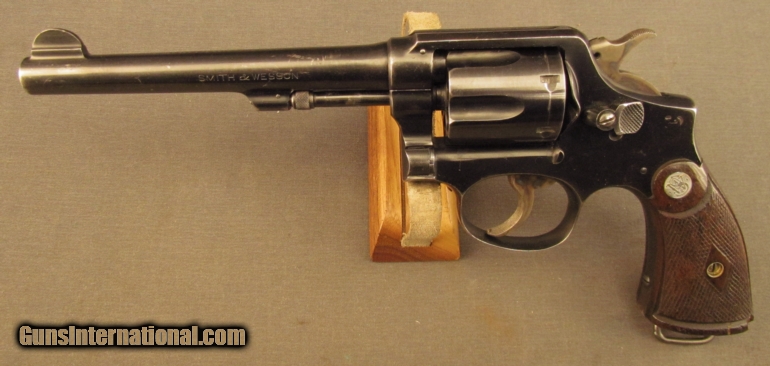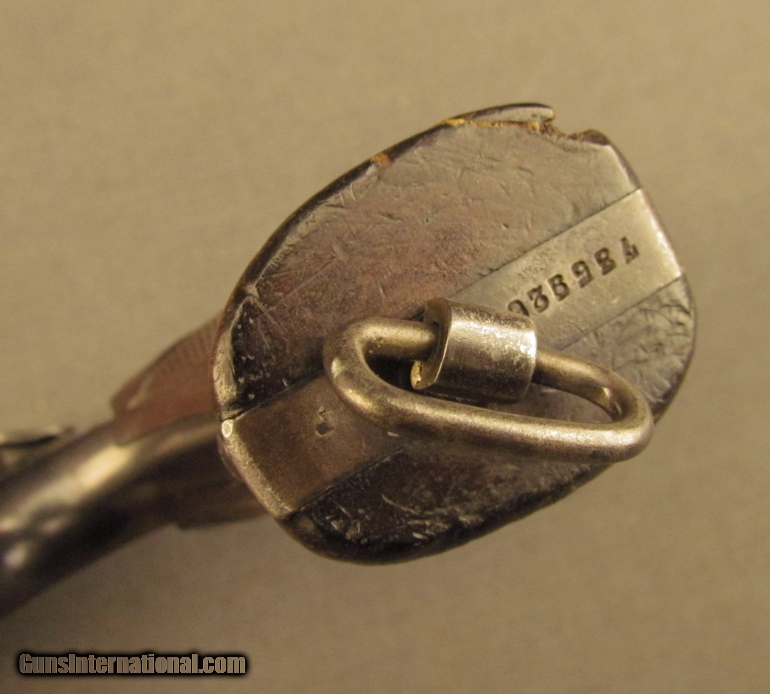 Description: Serial #735926, .38 S&W (.38/200), 6? barrel with an excellent, bright bore. This is a handsome revolver that has matching numbers on the frame, cylinder, extractor, yoke, and barrel and retains 92-95% of the original commercial blue finish with some minor silvering at the muzzle, some gray fading along the ejector rod, and further fading on the high edges and projections. There is a light turn-ring on the cylinder and the hammer and trigger have retained about 60-70% of their original color case-hardening. An off-center struck, Canadian ?C (Broad Arrow)? property mark is present on the left side of the frame. The checkered, diamond center, walnut, medallion grips are numbered to the gun on the interior and are in good shape with moderate flattening of the points as well as a few very minor chips around the butt. The revolver is housed in an original, 1945 dated, light blue R.A.F. canvasholster that has an ?M.W.&S. Ltd.? maker marking on the interior of the cover flap. The canvas exhibits some minor soiling throughout but is still intact and in excellent condition while the brass fittings, snaps, and cleaning rod are tarnished to a dull yellow-ochre patina. This is a fantastic Canadian military revolver in very good-near fine condition and comes with a desirable R.A.F. holster as well. FFL of C&R SOLD Manufacturer: S&W Model: M&P Serial Number: 735926 Caliber Info: .38 S&W Gauge Info: .38 S&W |