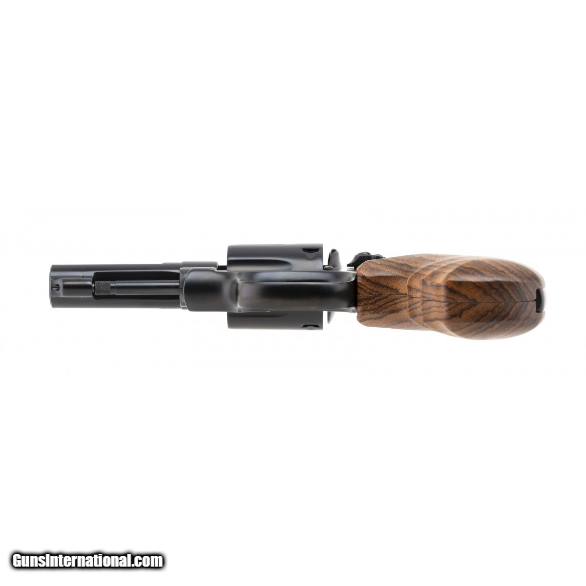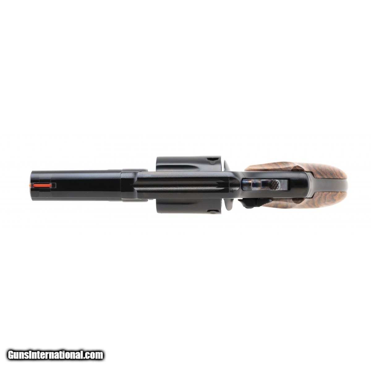 Outstanding custom combat revolver by Dave Laubert of Defensive Creations. This is an early 1970's model with pinned barrel. The barrel has been shortened to 3"", with slabbed sides, reverse crown and a custom fiber optic sight. A third lock has been added to the crane. The action has been tuned and hand honed. The hammer and trigger are custom case colored and the screws are nitre blued. Has custom wood combat grips. A beautiful and beautifully executed custom revolver, in excellent condition.