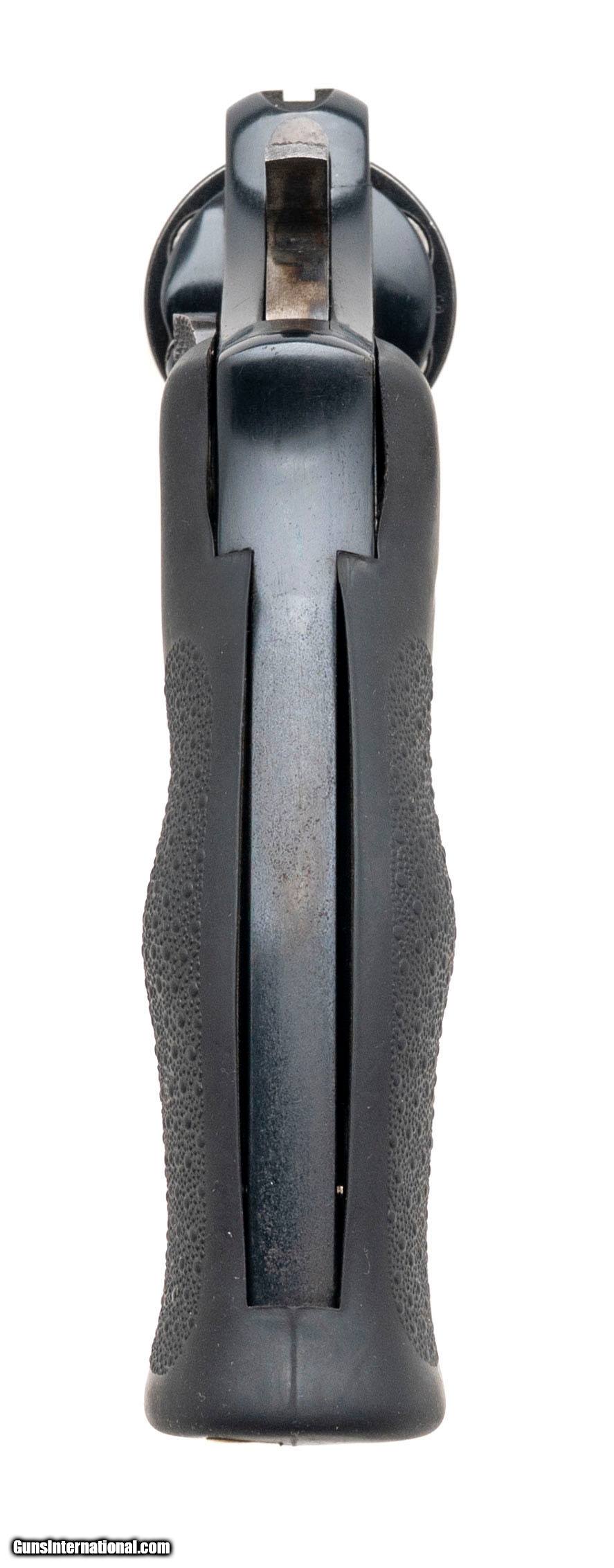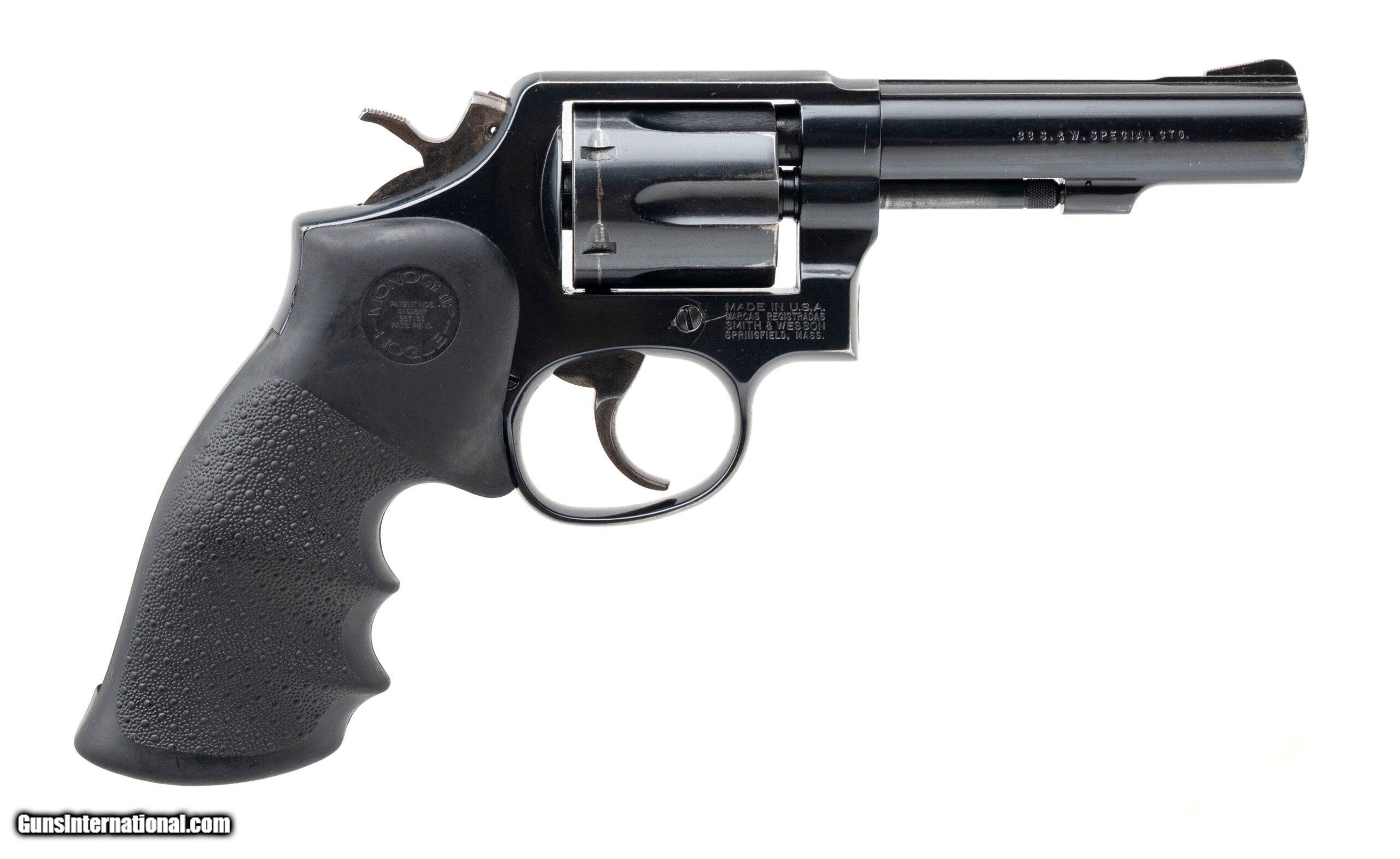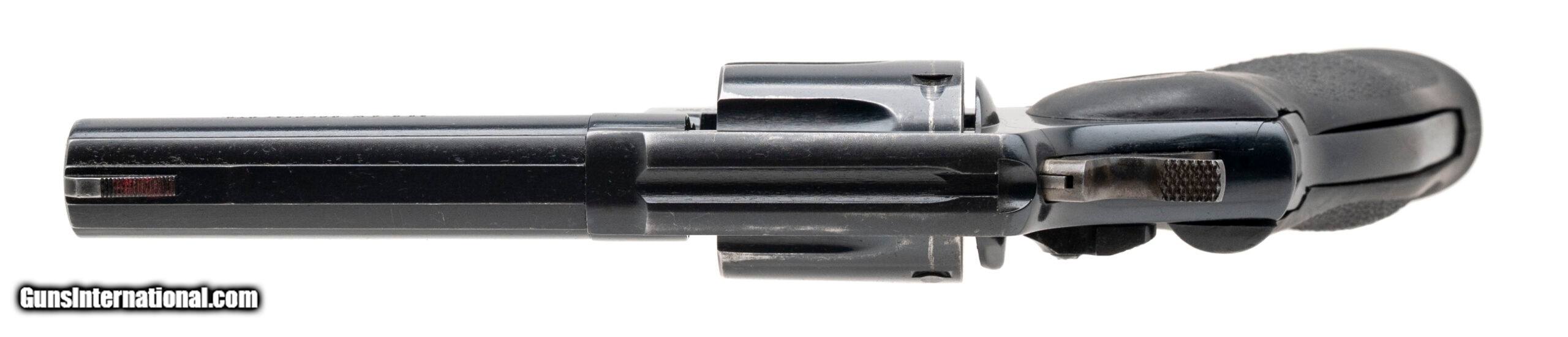 Description: "SN: BRE2610. 1990s vintage, .38S&W Special with a 4"" heavy barrel. Bore is excellent. Imported double-action K-frame revolver unmarked from the French Forest Ministry, blued finish, and Hogue Monogrip black rubber grips. Overall condition is very good. Comes with box. SOLD |