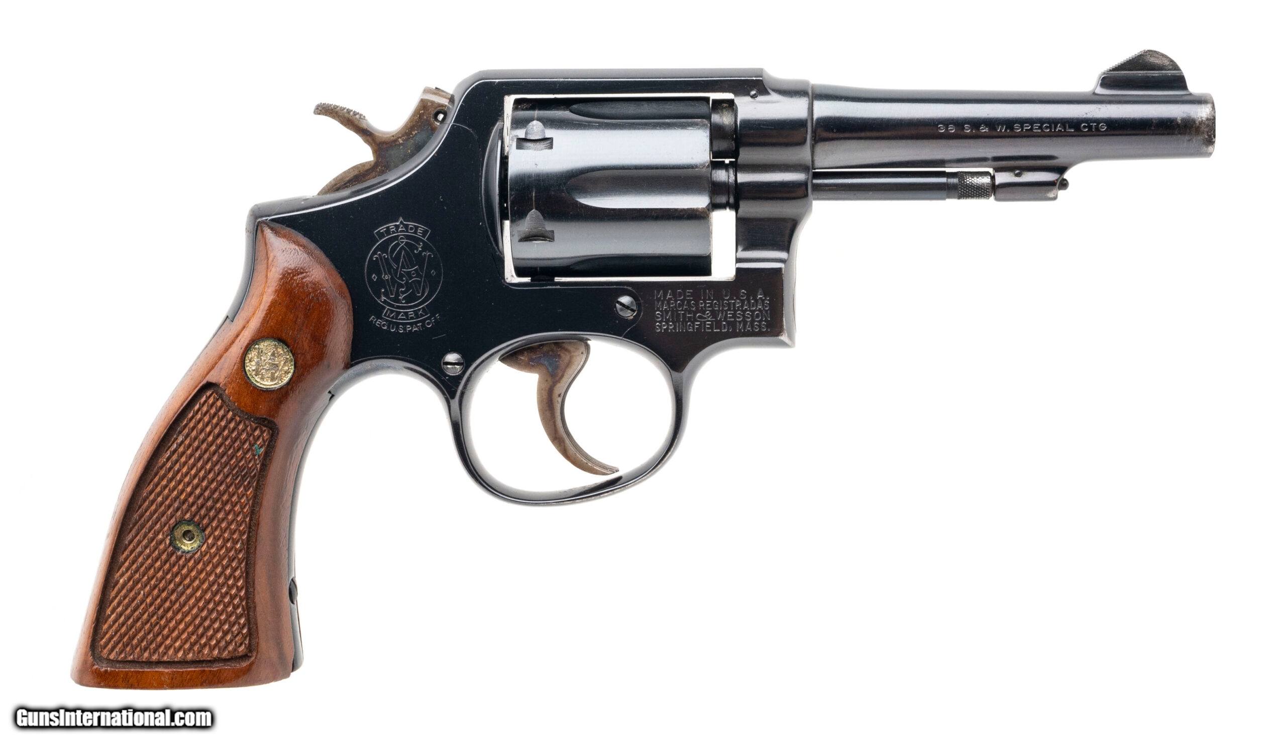Description: "SN: D277017. Made in 1970, .38 Special with a 4"" pinned barrel. Blued K-frame revolver with checkered wood grips. Some cosmetic finish wear and light patina visible on the barrel and cylinder but retains approximately 90% original blue finish. Overall condition is very good. Price: $695.00 Contact Seller |