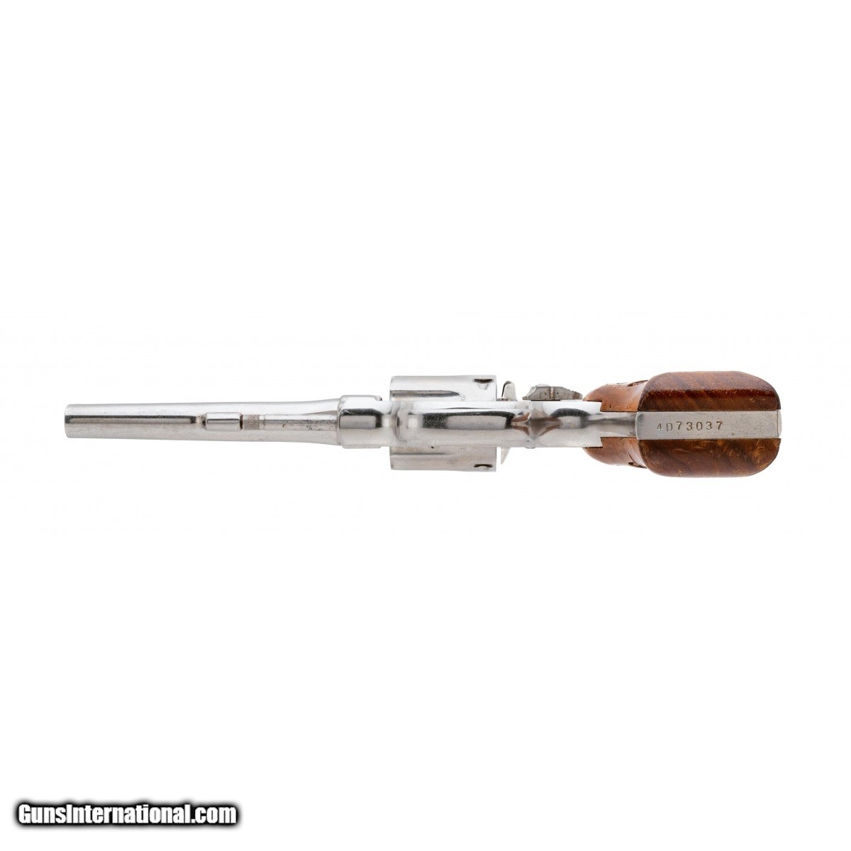 SN: 4D73037. 1970's vintage .38 Special with a 5"" barrel. Bore is excellent. K-frame revolver with nickel finish and wood grips. Has 98% nickel with light wear. The grips are excellent. Overall very good condition.
