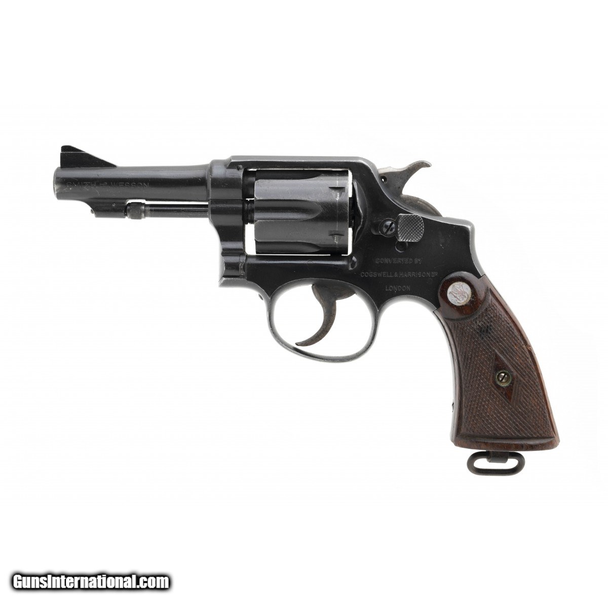 Description: "Serial number V425924. 38 Special with a 3 ¼" barrel. Interesting gun that is nicely stamped on the left hand side “Converted by/ Cogswell & Harrison/ London" This gun was originally made in 38 S&W for service in the English Military, then converted to 38 Special by Cogswell and Harrison for the commercial market. This gun is in excellent condition as refinished. Grips are very good. SOLD |