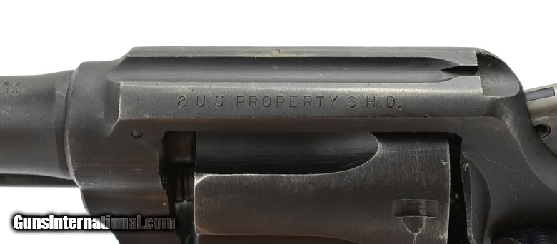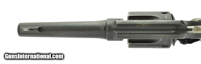 Description: Smith & Wesson Victory .38 Special caliber revolver. WWII issue “Victory” Smith & Wesson. Marked on top strap with U.S. Ordnance Bomb and U.S. Property. Inspected by G.H.D. “George H. Daw”, the government inspector. Gun has 96-97% phosphate finish. Bore is excellent as is the action. Grips show handling marks but no cracks or chips. Issued to military guards at defense plants and Military Police in WWII.