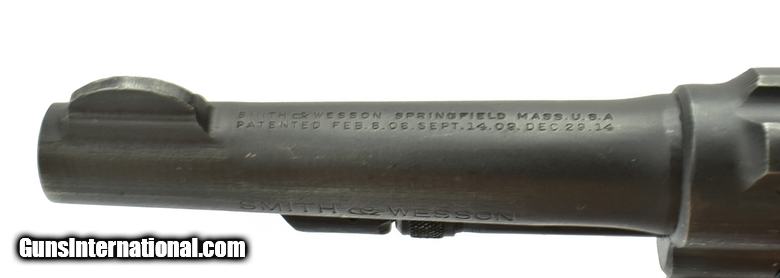 Smith & Wesson Victory .38 Special caliber revolver. WWII issue “Victory” Smith & Wesson. Marked on top strap with U.S. Ordnance Bomb and U.S. Property. Inspected by G.H.D. “George H. Daw”, the government inspector. Gun has 96-97% phosphate finish. Bore is excellent as is the action. Grips show handling marks but no cracks or chips. Issued to military guards at defense plants and Military Police in WWII.