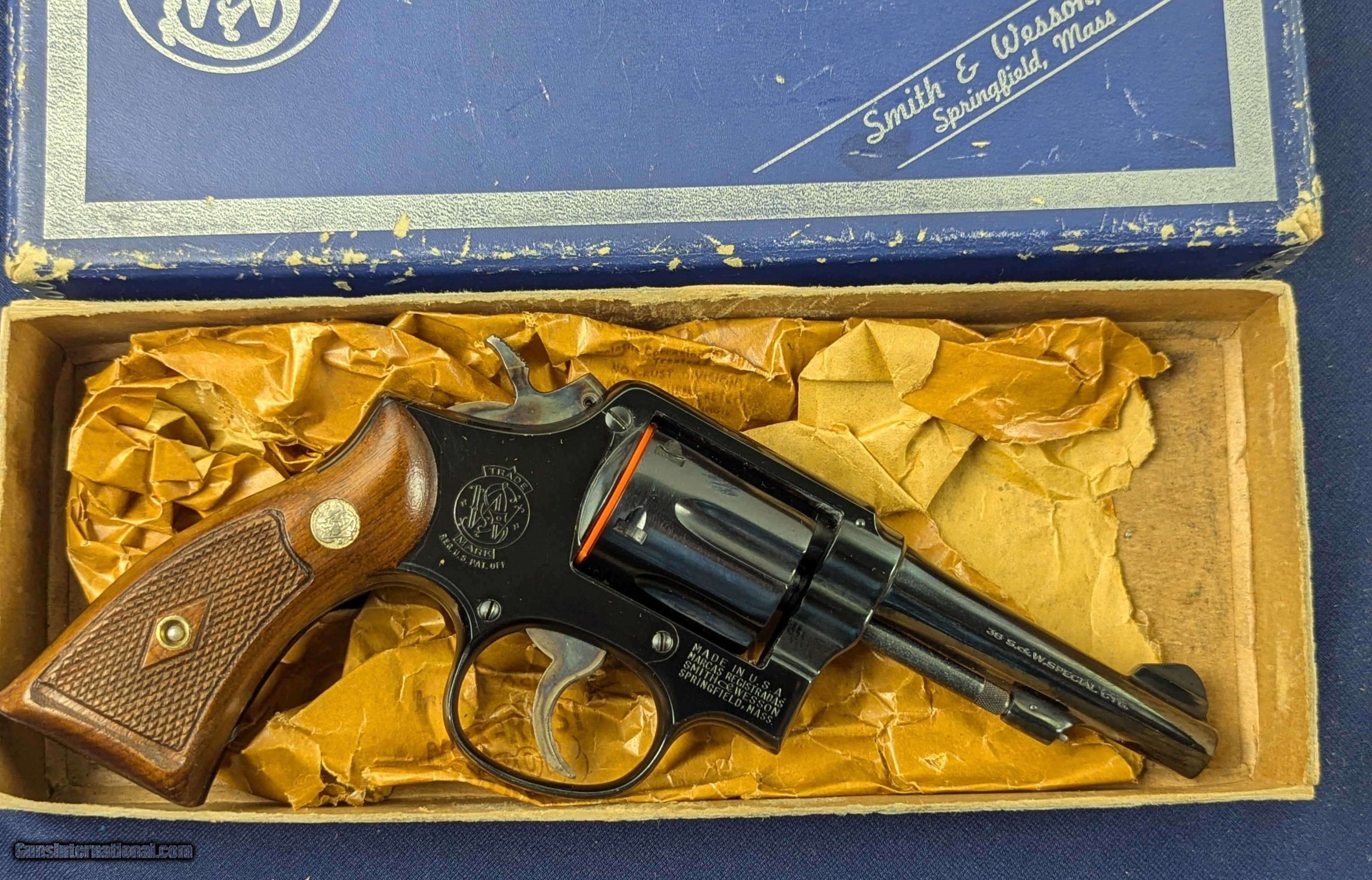 Description: Exc. Smith & Wesson Model 10 M&P .38 Special Revolver CURIO & RELIC ELIGIBLE Offered here for sale as a part of a very large collection of handguns from a large estate is this fine vintage Smith & Wesson Model 10 .38 Special revolver in excellent condition. The Smith & Wesson Model 10, originally introduced in 1899 as the .38 Hand Ejector Model, has undergone several iterations and remains one of the most iconic revolvers in firearms history. Chambered in .38 Special, this six-shot, double-action revolver is built on Smith & Wesson's K-frame and features fixed sights. Over its extensive production run, more than six million units have been produced, solidifying its status as a staple in both law enforcement and civilian use. ? Regarding this specific revolver with the serial number C348787, Smith & Wesson utilized a "C" prefix in their serial numbers from 1948 to 1967. Based on available data, serial numbers in the C300000 range were likely produced around 1954. This revolver is all original and in NEAR MINT condition. The revolver retains all of its original blue and only has some dried oil in a few recesses which are easily cleaned off. It appears that it has been used very little if at all and may be only test fired. Case colors still vibrant. When acquired the revolver was contained in an original factory box but not for this revolver but it fits and it shows well. Excellent collectible Smith & Wesson. L122 L122 Thanks for your bid. Shipping for this item is $42 however final shipping amount is based upon geographical area. Handling is $12.00 for longarms only. We gladly accept money orders, bank checks and personal checks. Credit card orders (VISA AND MASTER CARD ONLY) charged 3.95% additional for use. PLEASE CALL DALIA AT 203-257-5256 TO GIVE CREDIT CARD INFORMATION. Also, please view our at hansenguns. Click on "Online Catalog" and see All OF OUR ITEMS LISTED CONSECUTIVELY on or search online on that site with the ID “lope”...... OFFERED ONLINE AND AVAILABLE IN OUR RETAIL GALLERY IN SOUTHPORT, CT. Visit us also on Facebook at ://facebook/hansenguns/?fref=ts. We also own and/or operate Hansen Cartridge Co. and the Ruger Collectors Assc.(RCA). Hansen & Hansen wishes to expedite each order received, however we ship 80-100 items weekly, therefore orders paid by money orders or bank checks are cleared for shipping 5-7 days after deposited funds show in our account. Shipping date is scheduled ONLY AFTER VERIFICATION TAKES PLACE AND FFL/C&R IS RECEIVED (IF APPLIES). This is 5-7 days after WE receive order by mail - NOT customer date mailed and postmarked and after credit card funds are posted. Credit card orders exceeding $500 must be cleared through customer’s bank before shipping. Personal checks are accepted but orders are held UP TO 3 WEEKS after deposit of funds before items released for shipping. IF you have special instructions or require overnight or expedited shipping please advise at time of ordering and we will gladly prioritize shipping FOR AN ADDITIONAL CHARGE. THIS IS OUR POLICY and we encourage s to PLEASE READ AND UNDERSTAND OUR POLICY BEFORE . We would be pleased to answer ANY questions by phone (our toll free number is 1-800-571-7337 or e-mail cwlopiaol SOLD Curio/Relic: Yes Handgun Caliber: .38 Special |