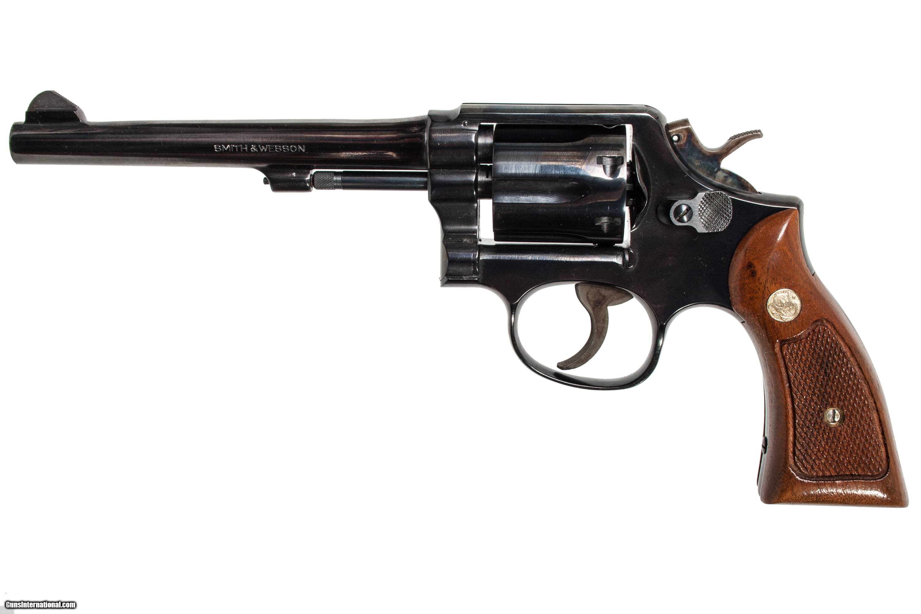Smith & Wesson 10-5 chambered in 38 Spl with a 6 inch barrel box and holster. This gun is in excellent condition and is covered by Dury's Lifetime Warranty.