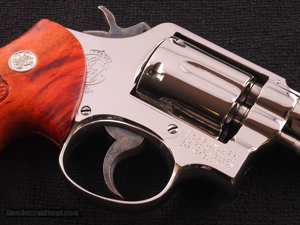Description: Exceptional Smith and Wesson Model 10-5 2" Nickel .38spl Double Action Revolver. Rare 2" Nickel Model 10-5. Beautifull polished mirror finish nickel. Appears unfired and exhibits only a few imperceptible micro imperfections in the nickel finish. It would be hard to find another this nice. $895 plus $25 shipping, Handgun Caliber: .38 Special Manufacturer: Smith and Wesson Model: Model 10 Barrel Length: 2 Condition: Exceptional Bore Condition: Mint Condition Action: Double Action Sights: Fixed Case: None Item Location: Rio Rancho, NM Grips: S&W Branded Finger Groove Grips Price: $895.00 Shipping: $25.00 Contact Seller |