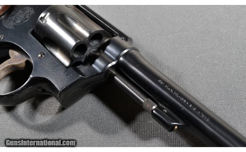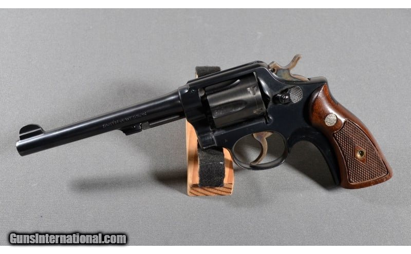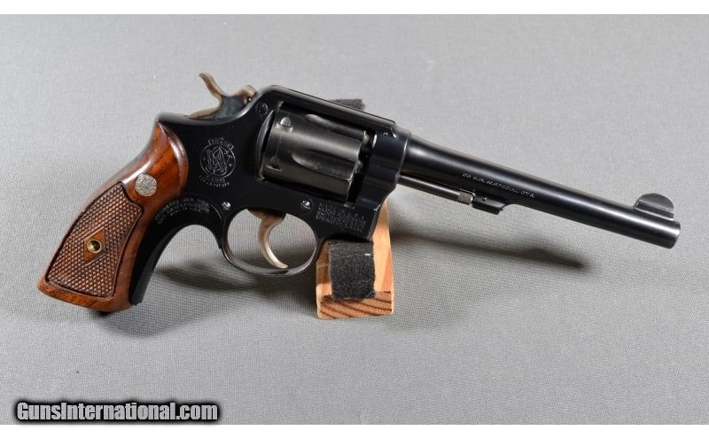 Description: The Smith & Wesson Model 10, previously known as the Smith & Wesson Military & Police or the Smith & Wesson Victory Model. This six shot 6 inch barrel 38 S&W Special comes with an added Pachmayr grip extender. .38 S&W Special SOLD Item Location: Lacey, WA |