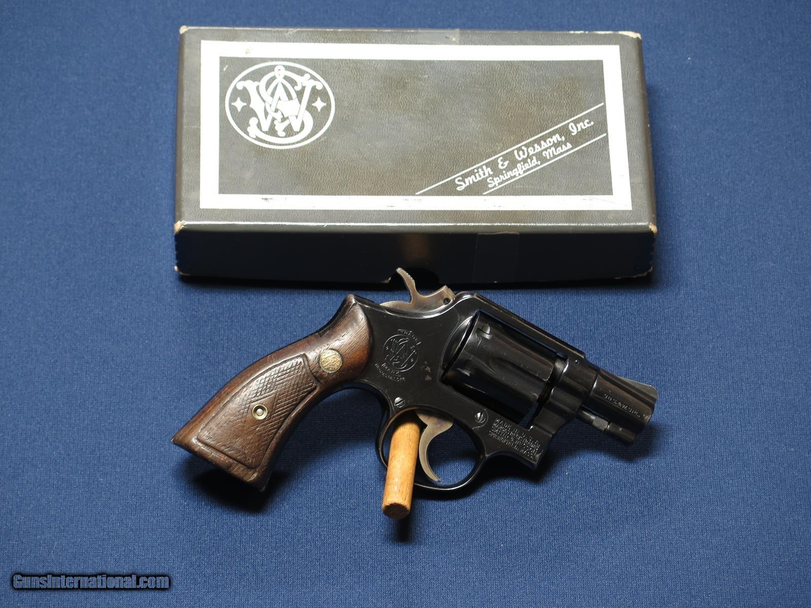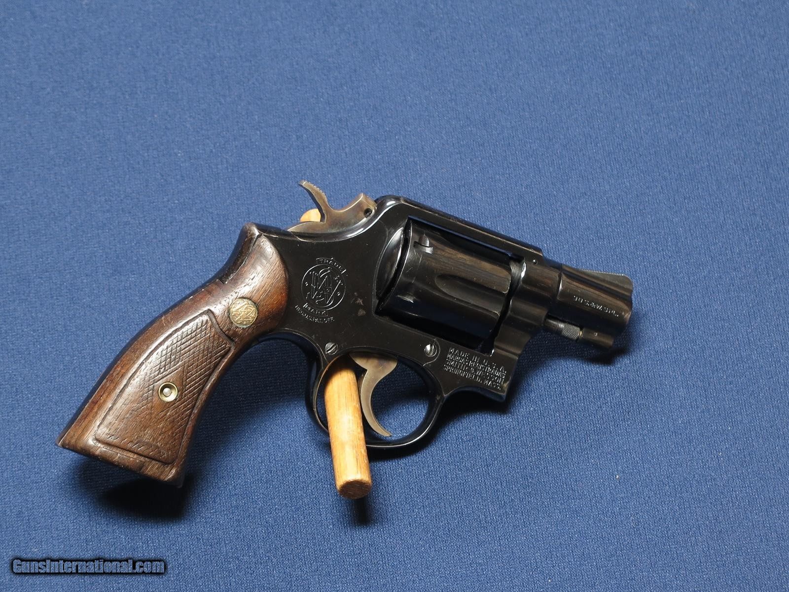 Description: Smith & Wesson 10-5 38 Special. 2 inch barrel. SN D3188XX. Pinned barrel. Checkering on grips is worn. Shows blue wear. Nice and tight. 10-5 box but numbers don't match. SOLD |