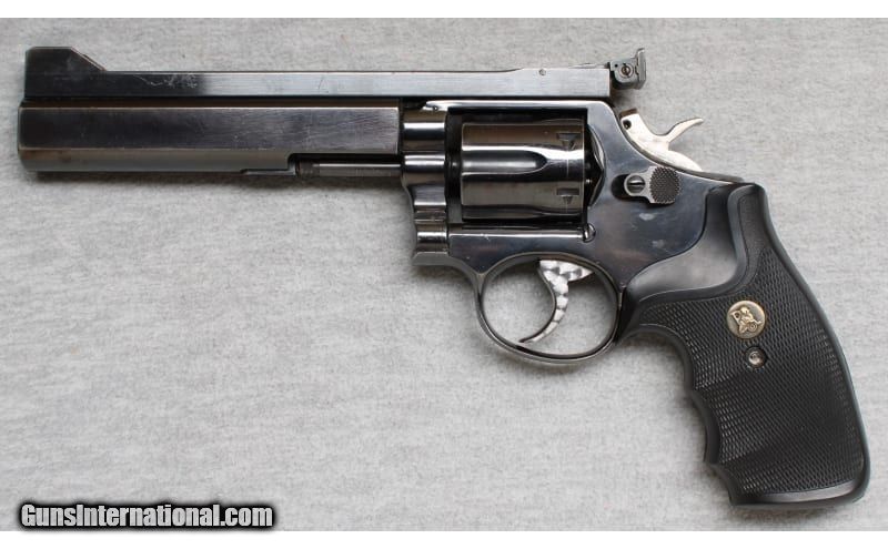 Description: Very good condition, some finish wear, small nicks and scratches. PPC style custom S&W Model 10 revolver, 6" slab side heavy barrel, Bomar rib with adjustable sights, smooth double acion trigger pull, jeweled hammer and trigger and Pachmayr grips. An excellent choice for target shooting or pistol shooting competitions. .38 Special SOLD Chambers: Revolver Metal Condition: Very good Bore Condition: Bright Barrels: 6 Triggers: Double and single action Butt Pad: Pachmayr grips Sights: Adjustable Item Location: La Vista, NE |