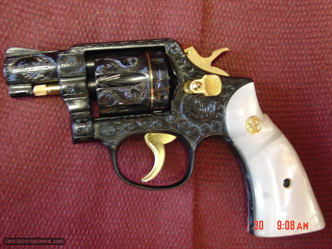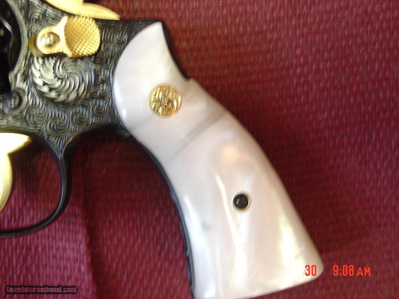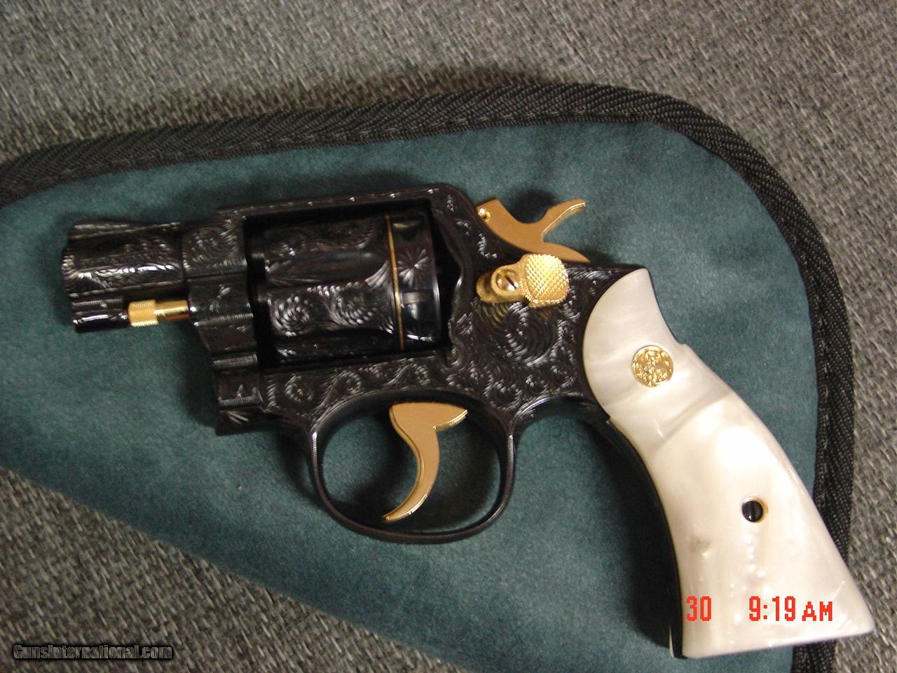 Smith & Wesson 10-5,rare 2" barrel,fully deep hand engraved with 24K gold accents by Flannery engraving,Pearlite grips,circa 1960's-a true wo