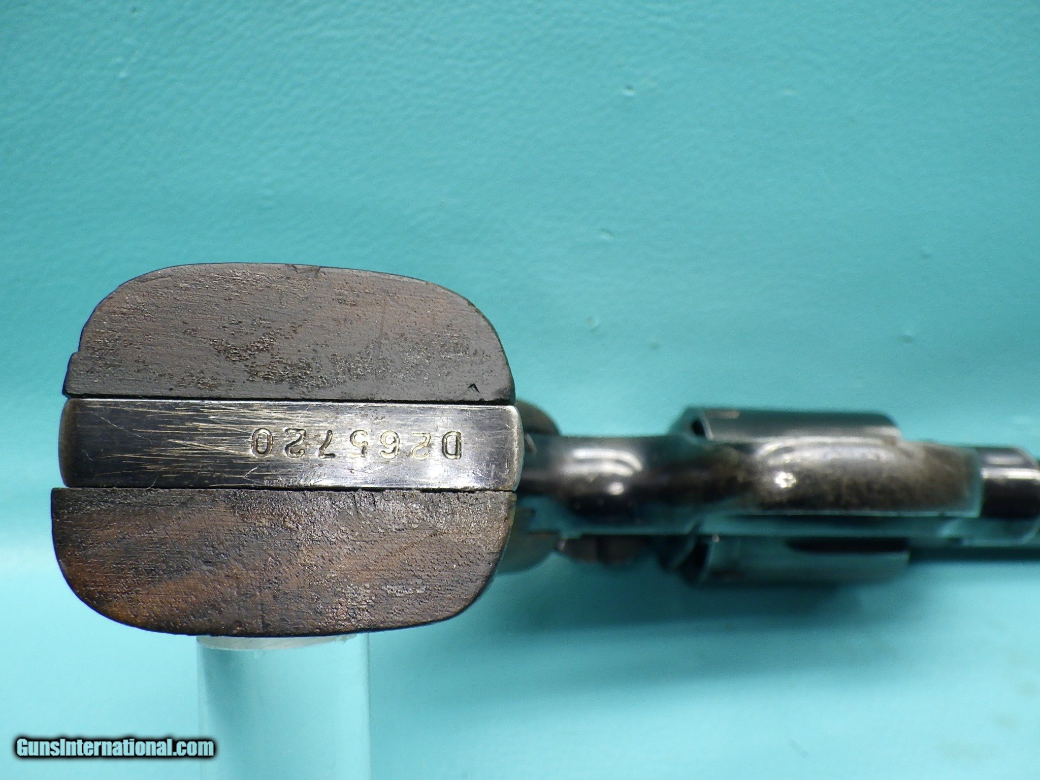Description: ***SOLD***Make: Smith and Wesson Model: 10-6 Finish: Blued Caliber: .38 Special Action: Double Barrel length: 4 inch Bore: Shiny with sharp rifling Grips: Checkered walnut Sights: Integrated rear with ramp front MFG Date: 1969-1970 Features: Built on square butt K frame, 6 round fluted cylinder, smooth fore/back strap, color case hardened target trigger, and grooved color case hardened trigger. Extras: HKS 10 Speed loader Condition: Bright finish with some signs of wear on the barrel, trigger guard, and frame which the photos show. Shipping Cost: $25.00 Tech: JT22124.649 The revolver is in good working order with proper timing and lockup. Please refer to the photos for the overall condition. FFL is required. No handgun sales in MA.***SOLD*** SOLD Handgun Caliber: .38 Special Manufacturer: Smith & Wesson Model: 10-6 Serial Number: D265720 Barrel Length: 4 |