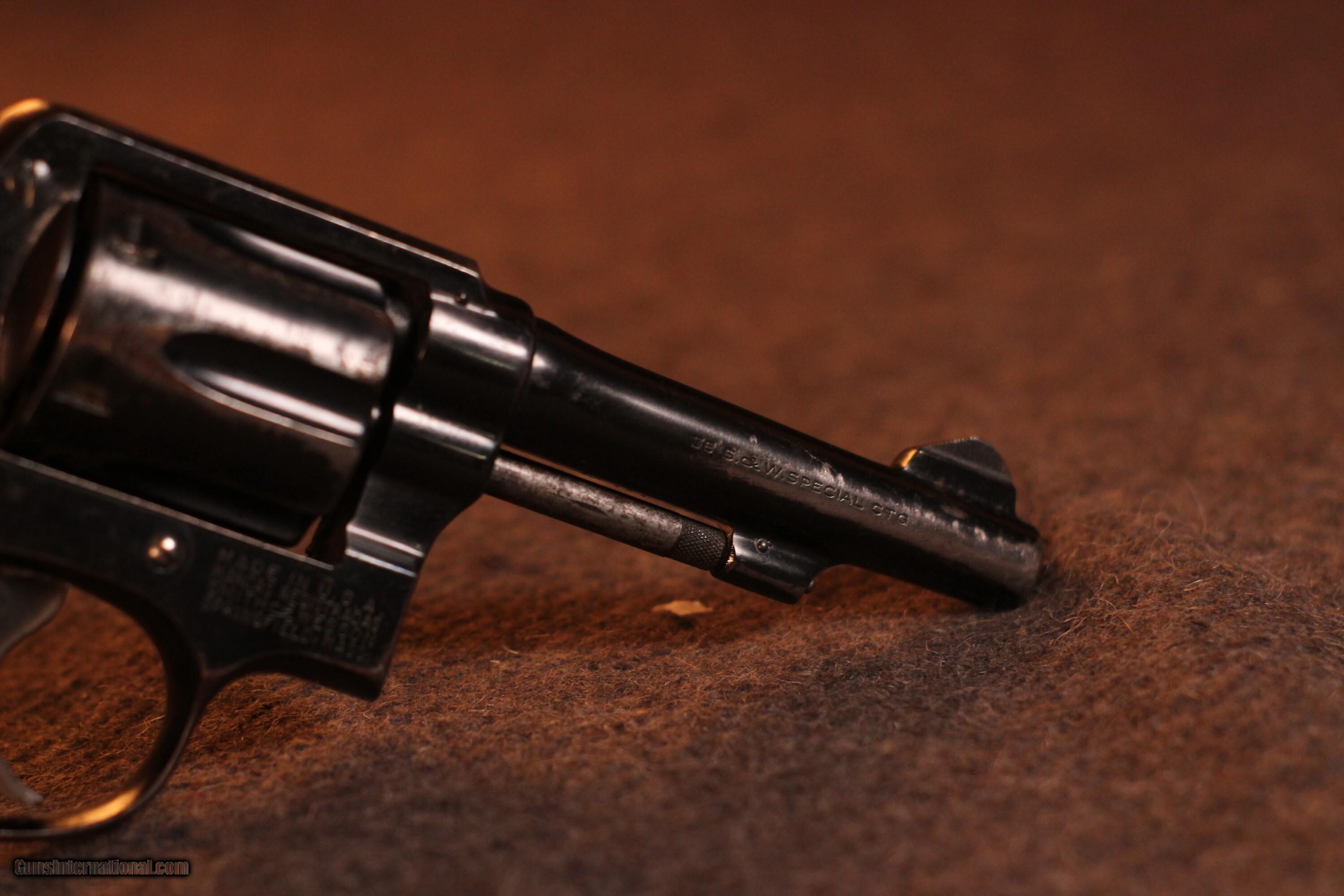 Description: 4in pinned barrel 5 screw model Short action with humpback hammer Correct diamond grips 65% to 75% original blue Handgun Caliber: .38 Special Price: $439.00 Shipping: $40.00 Contact Seller |