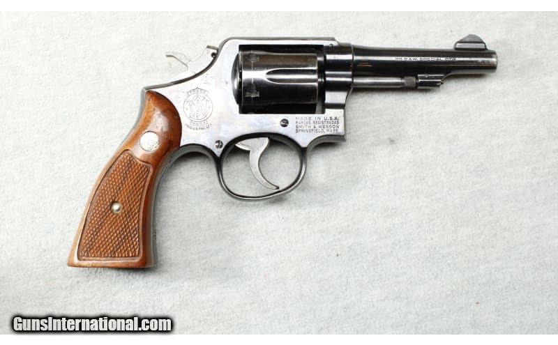Description: Smith & Wesson Model 10-5 chambered in .38 Special. This revolver has been in production since 1899. It is a six-shot, .38 Special, double-action revolver with fixed sights. It has a 4-inch regular barrel finished in a high gloss bluing. Some 6,000,000 of the type have been produced over the years, making it the most popular handgun of the 20th century. No box. .38 Special SOLD Metal Condition: Very good Wood Condition: Very good Bore Condition: Bright Barrels: 4 Inches Triggers: Factory Weight: 1 lb 8 oz Sights: Fixed Item Location: La Vista, NE |