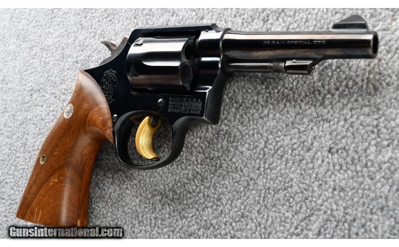 Description: In the late 1950s, Smith & Wesson adopted the convention of using numeric designations to distinguish their various models of handguns, and the M&P was renamed the Model 10. In 1962 an improvement was made to change sight width from 1/10" to 1/8" on standard barrel and the Model 10-5 was born. .38 S&W Special SOLD Chambers: .38 S&W Special in a six round revolver Metal Condition: Very good Wood Condition: "Good, smooth target grips with a few scratches Bore Condition: Very good Barrels: 4" Tapered Triggers: Single/Double Action with brass trigger shoe Weight: 32 oz Sights: "Fixed blade front, notched rear Item Location: Grand Junction, CO |