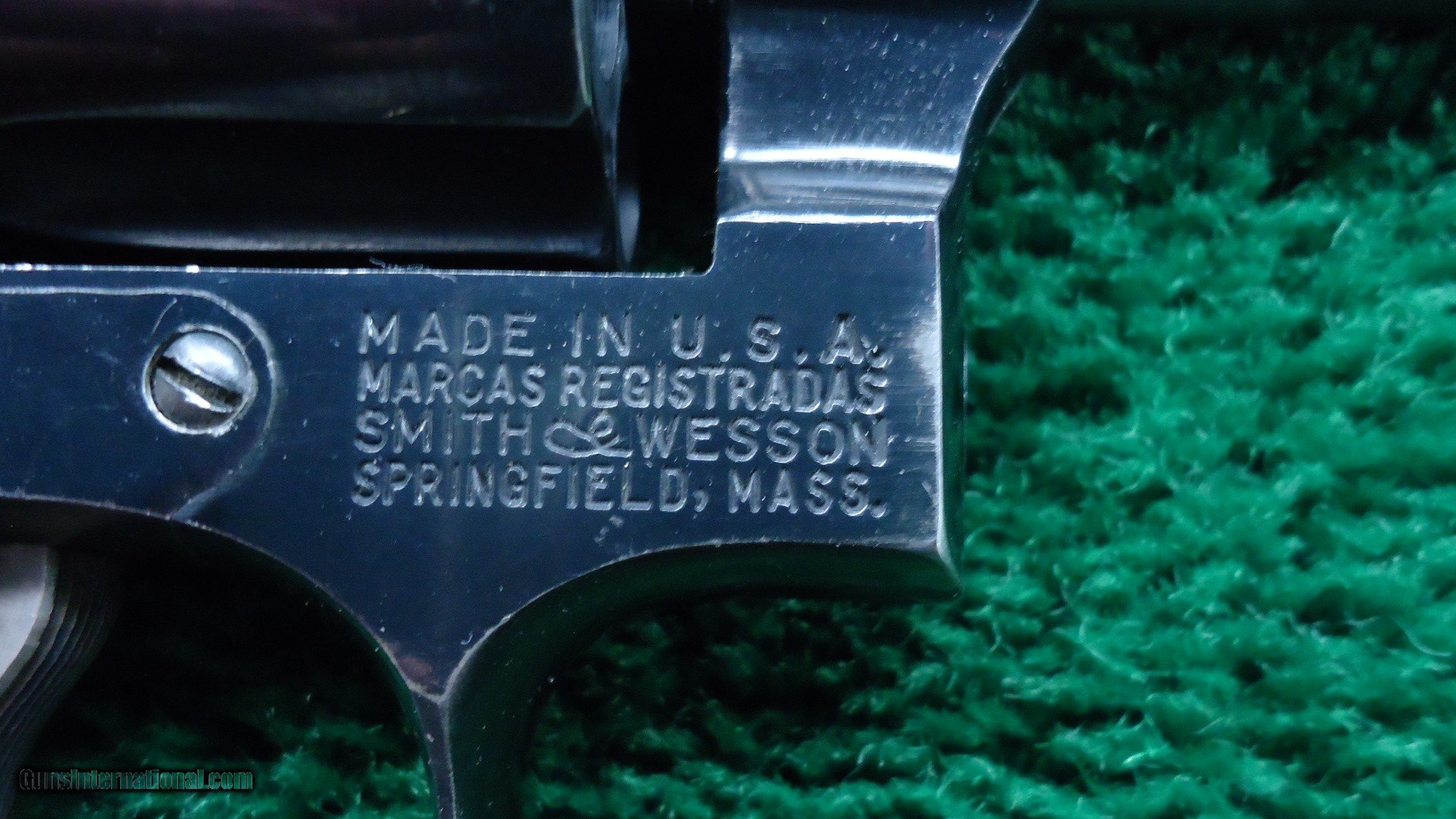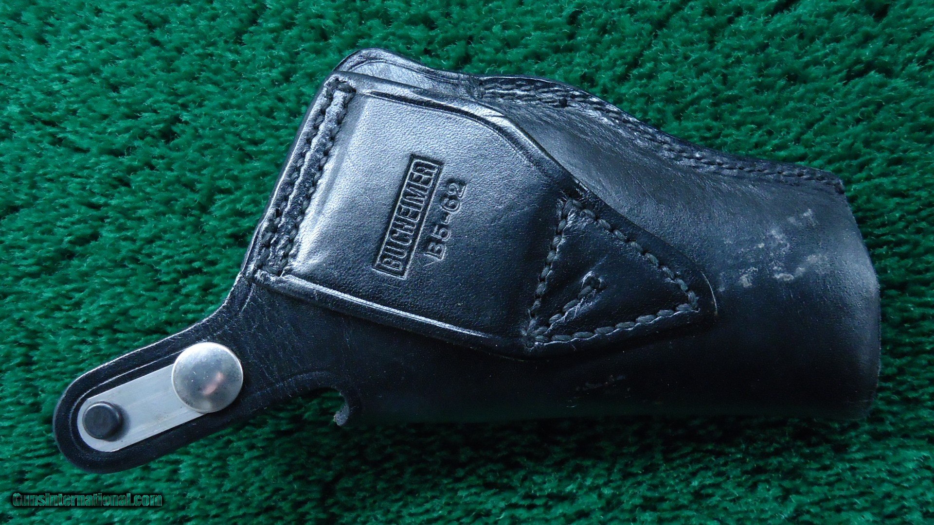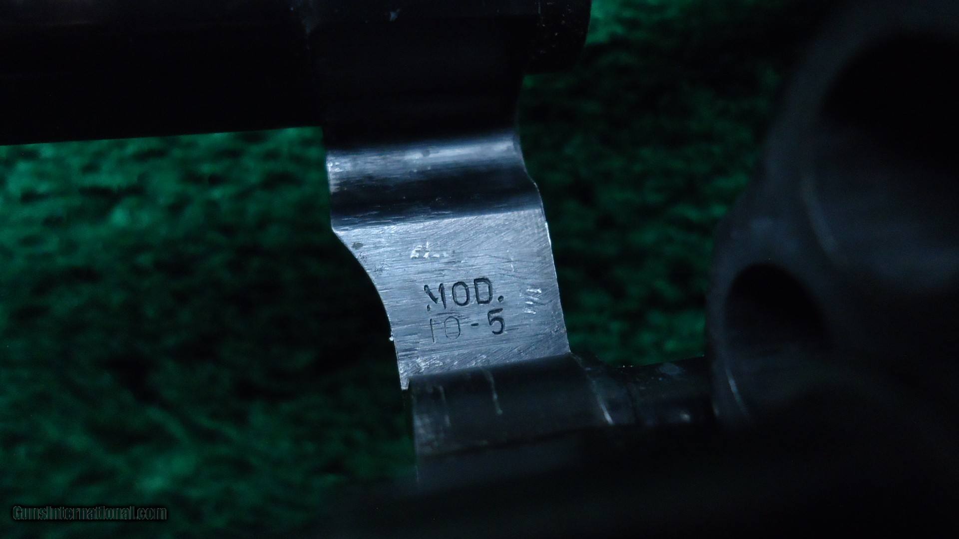 Description: 6 shot Double Action revolver chambered in 38 S&W Special caliber. The Model 10-5 series in the late 1960s featured a straight bull barrel and a sloped milled ramp front sight. This one made in 1966 has the rare 3 inch barrel. Revolver shows some handling wear but is still in quite nice condition most all original blue remaining. Hammer and trigger have decent case colors. Hard rubber grips. Crisp action and very nice bore. Black leather Bucheimer holster is in very good condition. A nice little outfit that has been used but very well taken care of. No box. Leroy Merz Antique Firearms specializes in antique and vintage Winchesters and other fine American firearms. Since 1965 Mr. Merz has taken part in the world of firearms and has been a contributor to many well known reference books. We have hundreds of additional guns in every price range at our home online. Search for Merz Antiques in google. SOLD Curio/Relic: Yes |