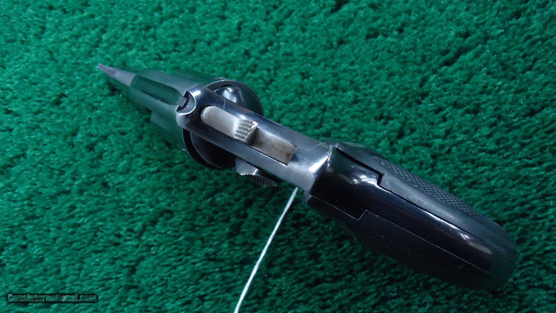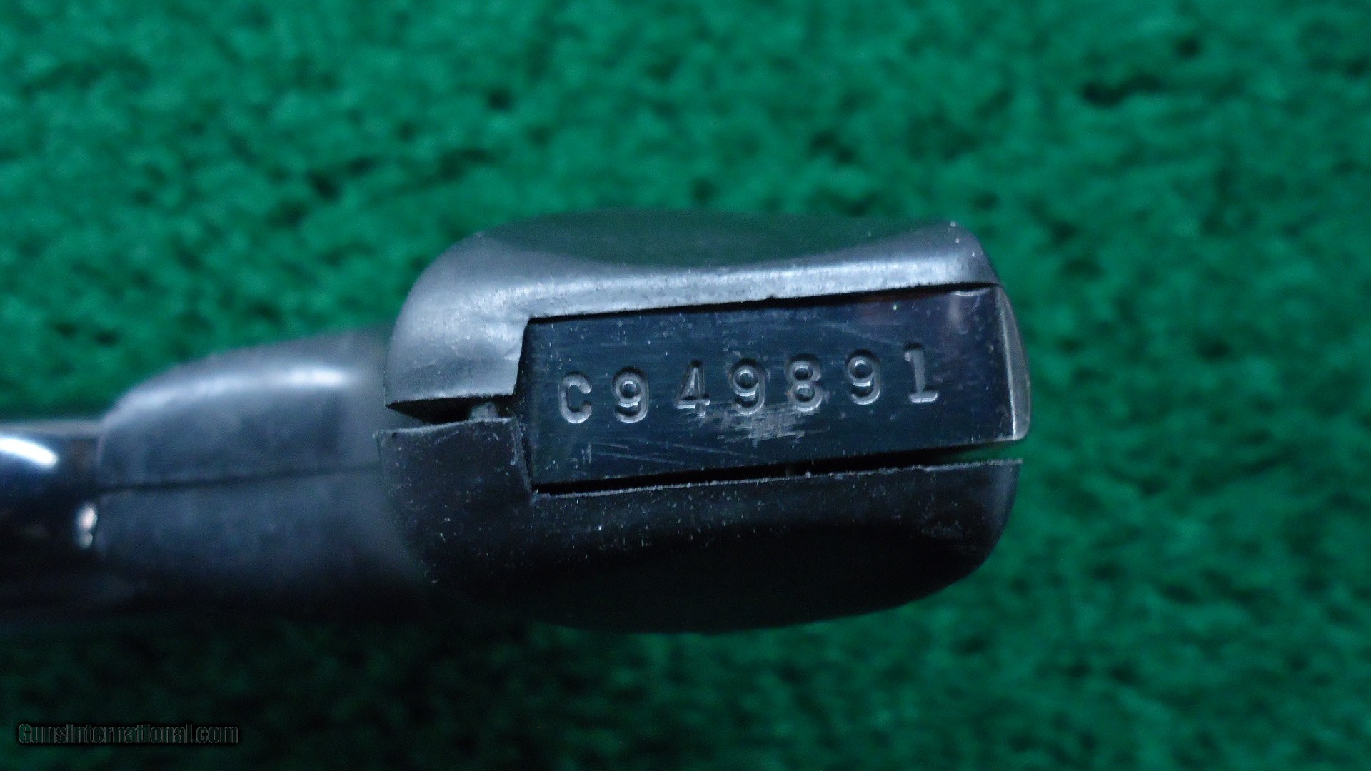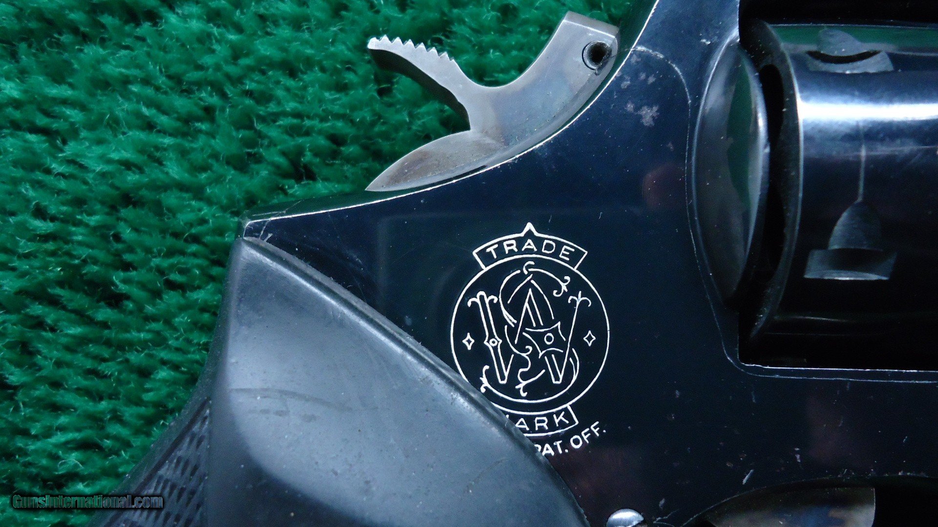 Description: 6 shot Double Action revolver chambered in 38 S&W Special caliber. The Model 10-5 series in the late 1960s featured a straight bull barrel and a sloped milled ramp front sight. This one made in 1966 has the rare 3 inch barrel. Revolver shows some handling wear but is still in quite nice condition most all original blue remaining. Hammer and trigger have decent case colors. Hard rubber grips. Crisp action and very nice bore. Black leather Bucheimer holster is in very good condition. A nice little outfit that has been used but very well taken care of. No box. Leroy Merz Antique Firearms specializes in antique and vintage Winchesters and other fine American firearms. Since 1965 Mr. Merz has taken part in the world of firearms and has been a contributor to many well known reference books. We have hundreds of additional guns in every price range at our home online. Search for Merz Antiques in google. SOLD Curio/Relic: Yes |