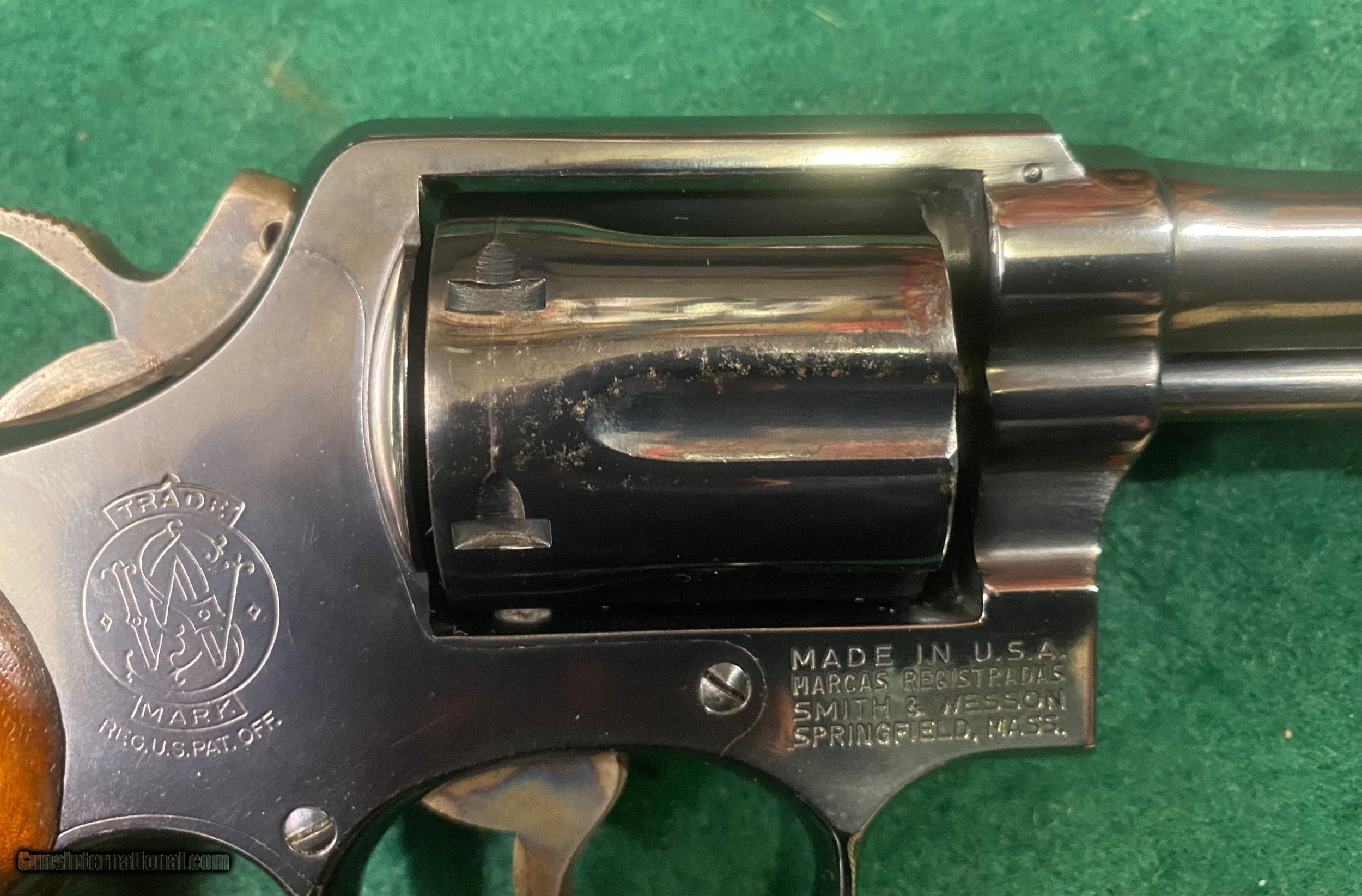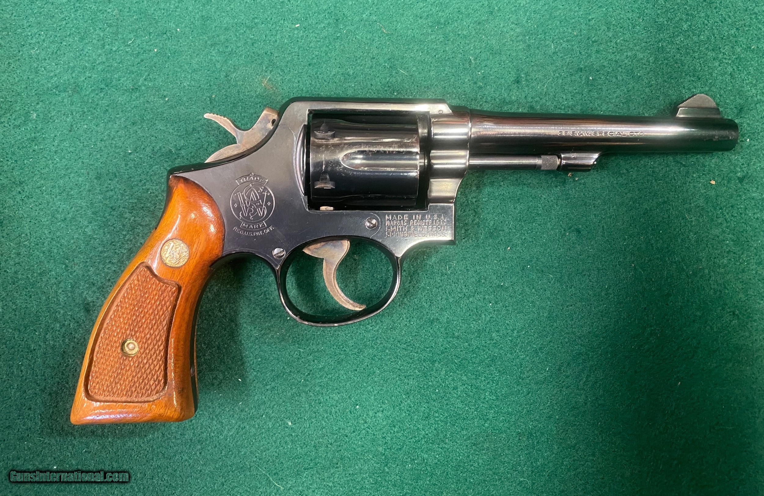 Description: Attention Smith & Wesson collectors, here's something you might be interested in: this time it's a Model 10-5 w/a fairly rare 5" pinned barrel in 90% condition. Does not appear to have been shot much. A few minor imperfections, please see pics for more details. The serial number indicates this was manufactured in 1972 which makes it eligible to be picked up with a Curio and Relic license. $569 + $30 shipping. We reserve the right to sell this item at our retail location until an offer is placed on Guns International. We accept major credit cards with a 4% fee. USPS money orders are also welcome. Business hours are Tuesday through Saturday, 9 AM to 5 PM. Closed on Sunday and Monday. We are a brick and mortar store in business at the same location for more than two decades. If you're in the Waynesboro, PA area, stop on by and see our wide selection of classic and modern firearms at George Herold's Gun Shoppe. We look forward to seeing you! SOLD Curio/Relic: Yes Handgun Caliber: .38 Special Manufacturer: Smith & Wesson Model: 10-5 Serial Number: D464143 Barrel Length: 5” Condition: 90% |
