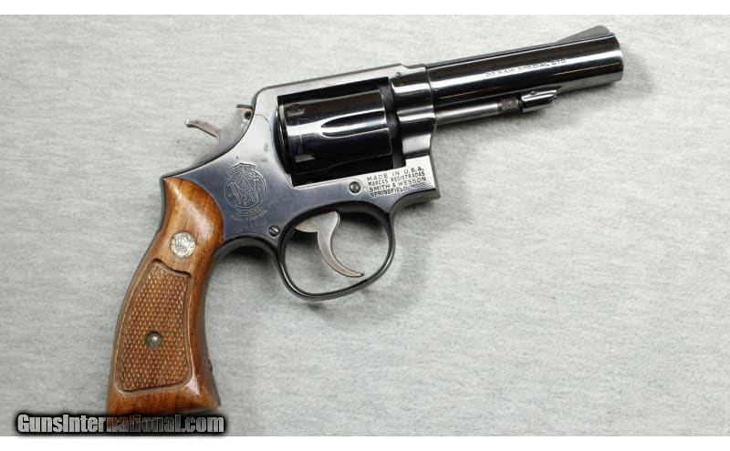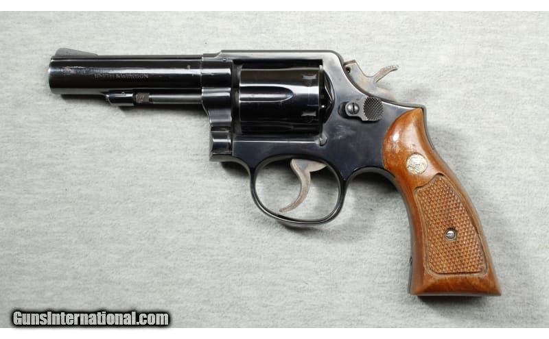 Description: Excellent condition, light wear, few small scratches. S&W .38 Special revolver, 4" heavy barrel, polished blue finish, fixed sights, 6 shot fluted cylinder, double & single action trigger, checkered hammer & cylinder latch and S&W checkered wood grips. .38 Special SOLD Chambers: Revolver Metal Condition: Excellent Bore Condition: Bright Barrels: 4 Triggers: Double and single action Butt Pad: Wood grips Sights: "Fixed rear, ramp front sights Item Location: La Vista, NE |
