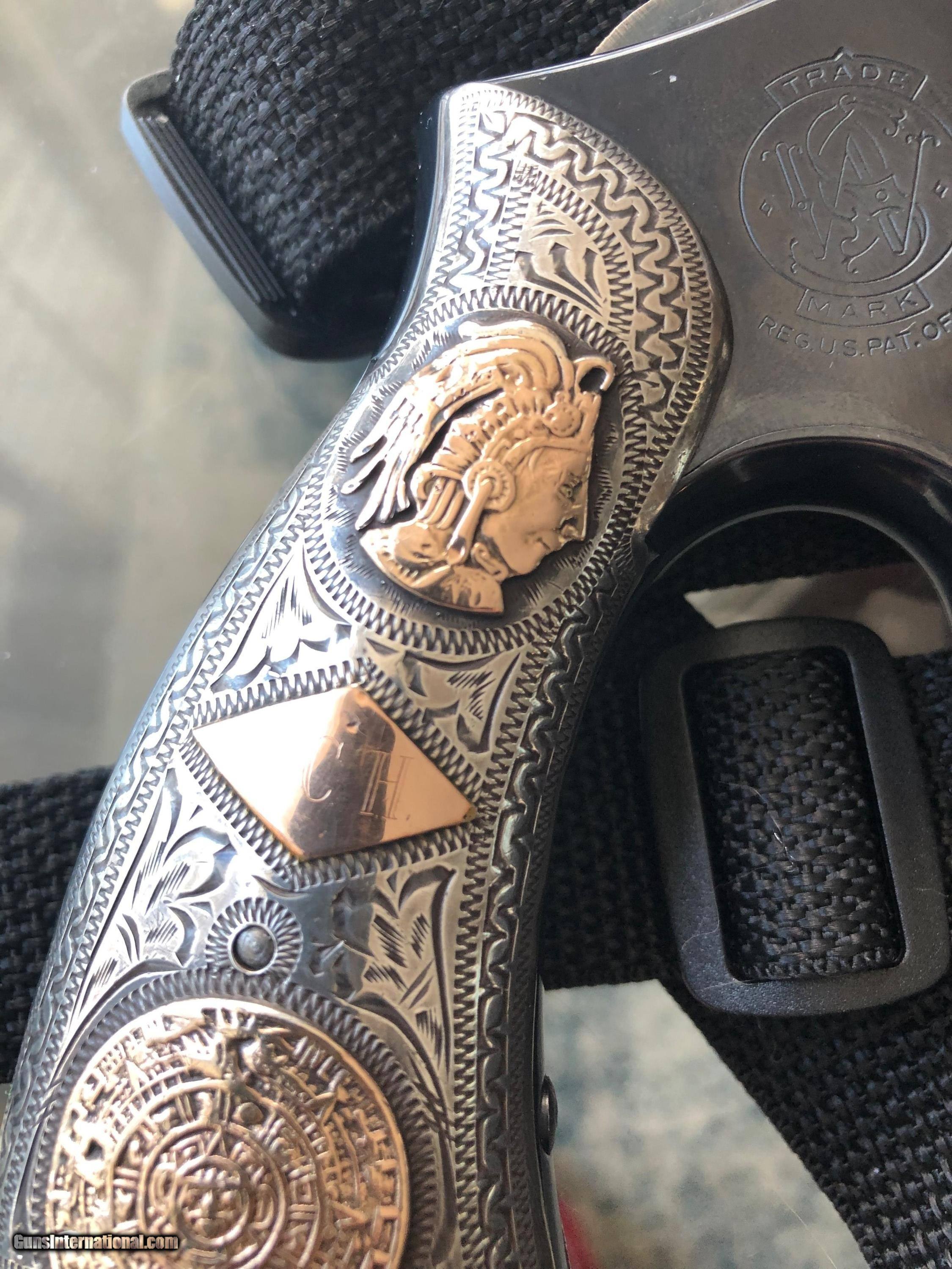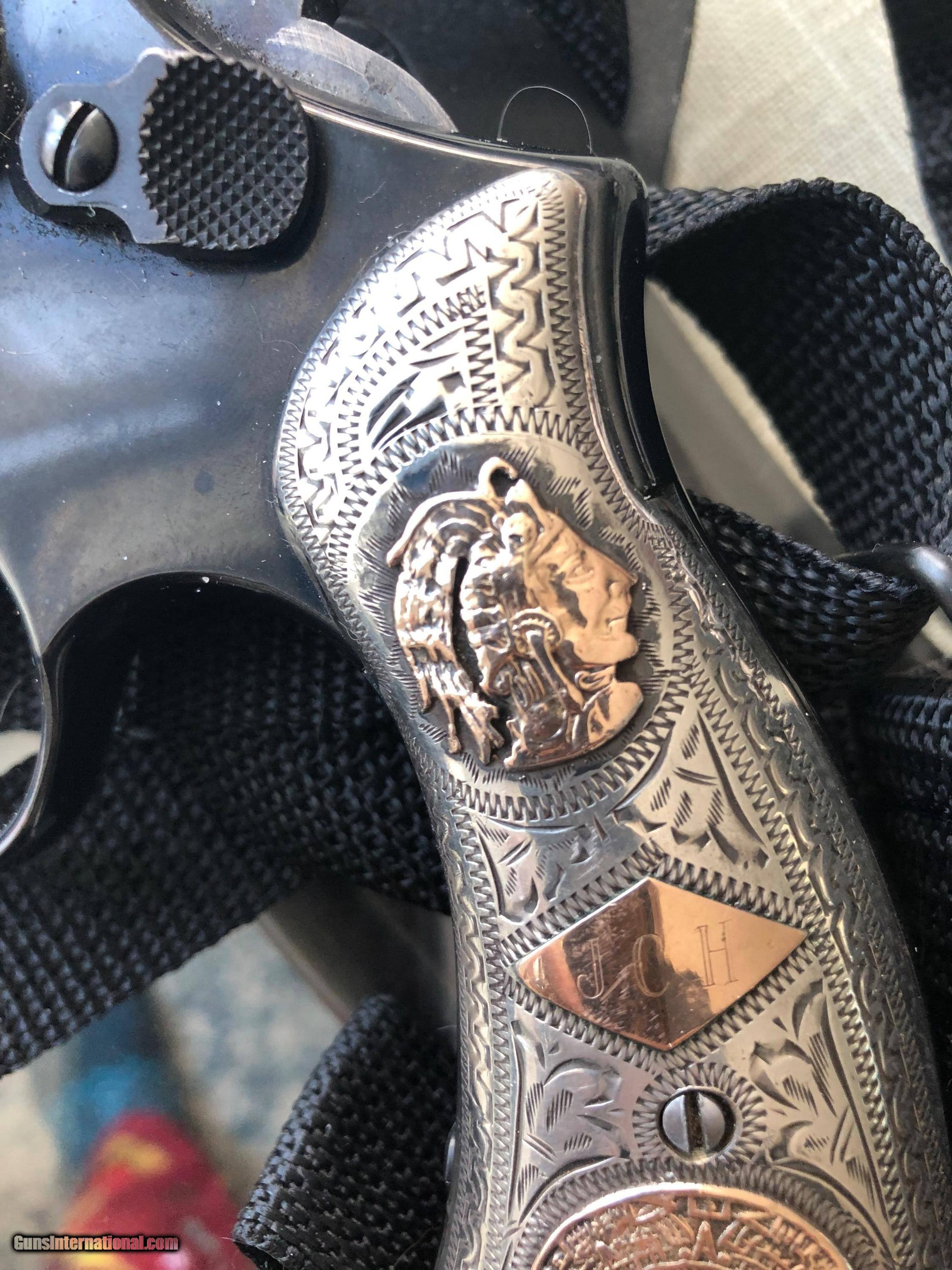 Smith & Wesson Model 10-7 2” W/14k Aztec Inserts & Sterling Silver (marked) Grips - Red Insert Frt. Sight.