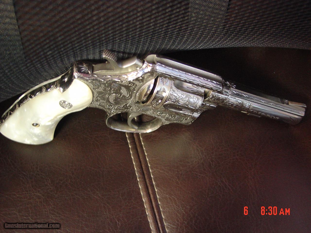 Smith & Wesson,model 10-8,fully engraved by Flannery & refinished in bright nickel,4",Pearlite grips,like new,awesome work of art-nicer in person !!