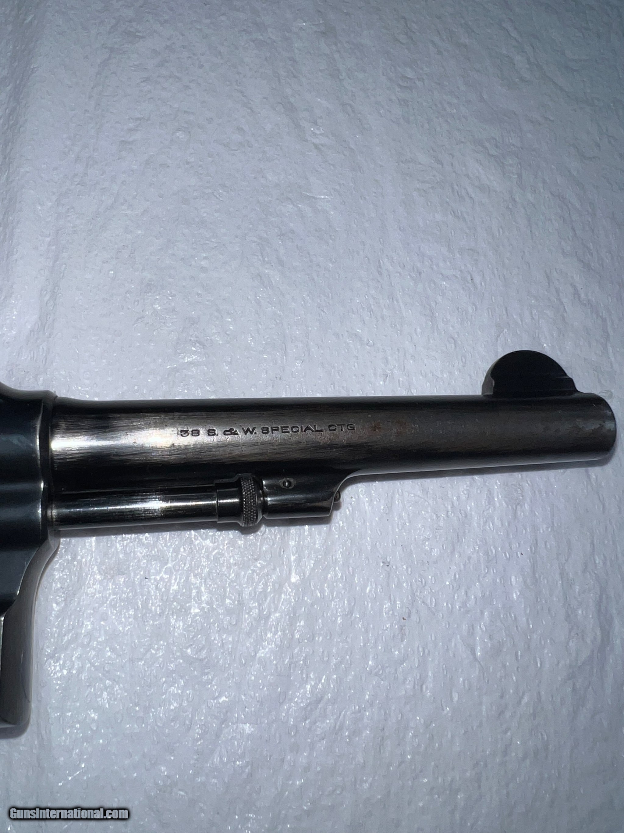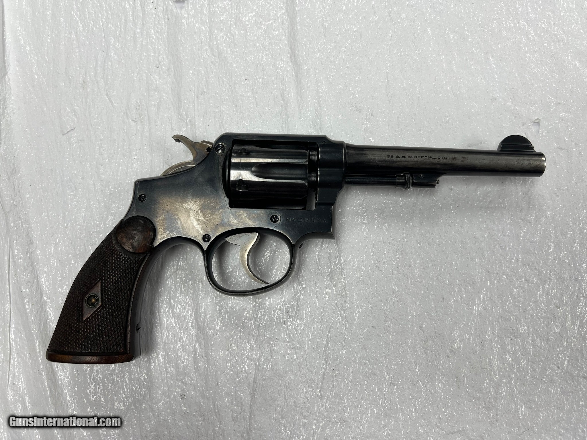 Description: Guns Listing ID: 1206698 Comes as is. No box and no extras. Finish has been worn off along barrel and parts of the cylinder. See photos for details. SOLD Manufacturer: SMITH & WESSON Model: Pre Model 10 Caliber Info: .38 SPL Condition: Used - Non-Certified Barrels: 5 BARREL Finish: BLUED |