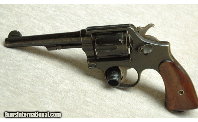 Description: Good condition, finish wear, nicks and scratches. S&W manufactured lend / lease WWII era revolver. 5" Barrel, fixed sights, wood grips and lanyard ring. Manufactured in the USA. .38 S&W SOLD Curio/Relic: Yes Chambers: Revolver Metal Condition: Good Wood Condition: Grips are in good condition Bore Condition: Bright Barrels: 5 Triggers: Double and single action Butt Pad: Wood grips Sights: Fixed sights Item Location: La Vista, NE |