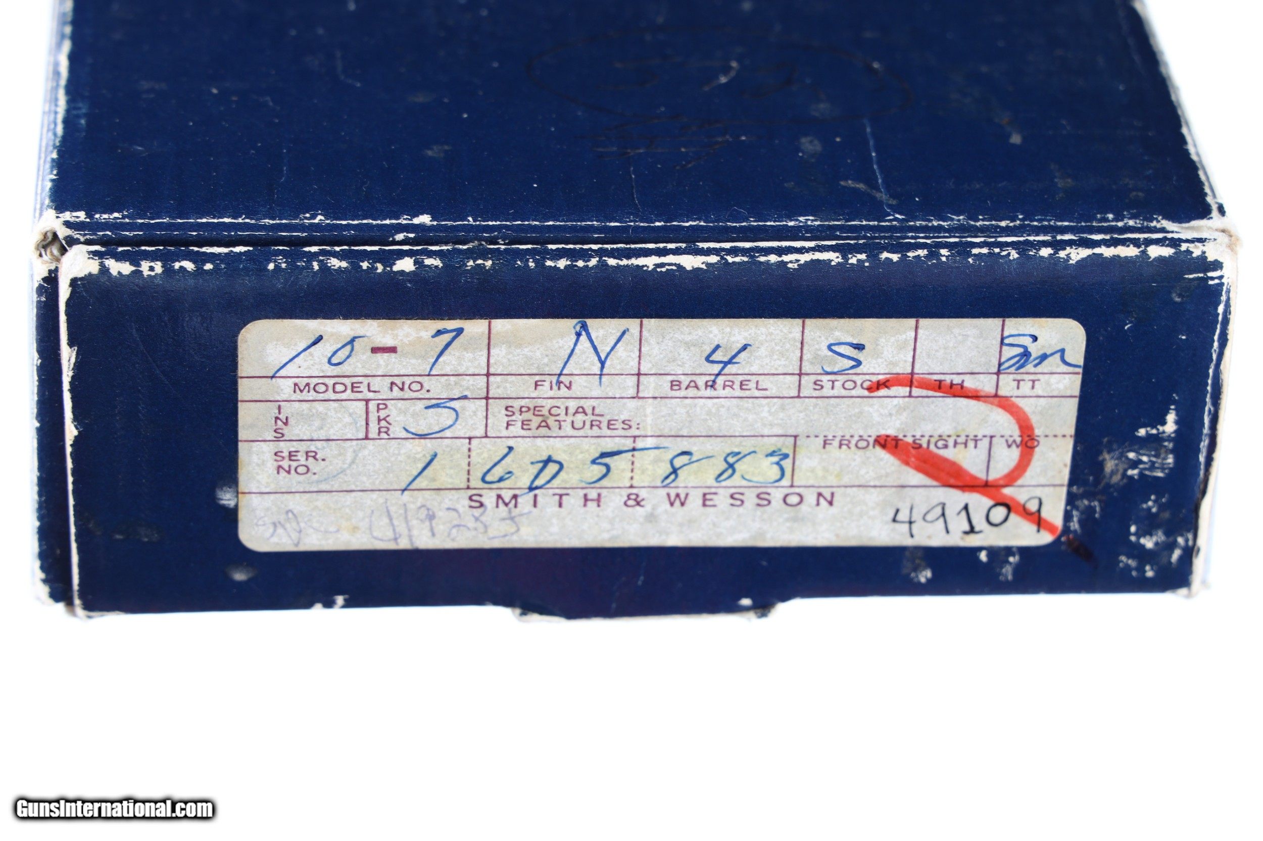 Description: Excellent plus overall condition. Manufactured 1982. With original box. • Free Shipping, No Credit Card Fees. • Lay-a-way available for this firearm. • 1/3 Down, a 1/3 in 30 Days 1/3 in 60 Days. SOLD Manufacturer: Smith & Wesson Model: 10-7 Serial Number: 16D5883 Barrel Length: 4 |
