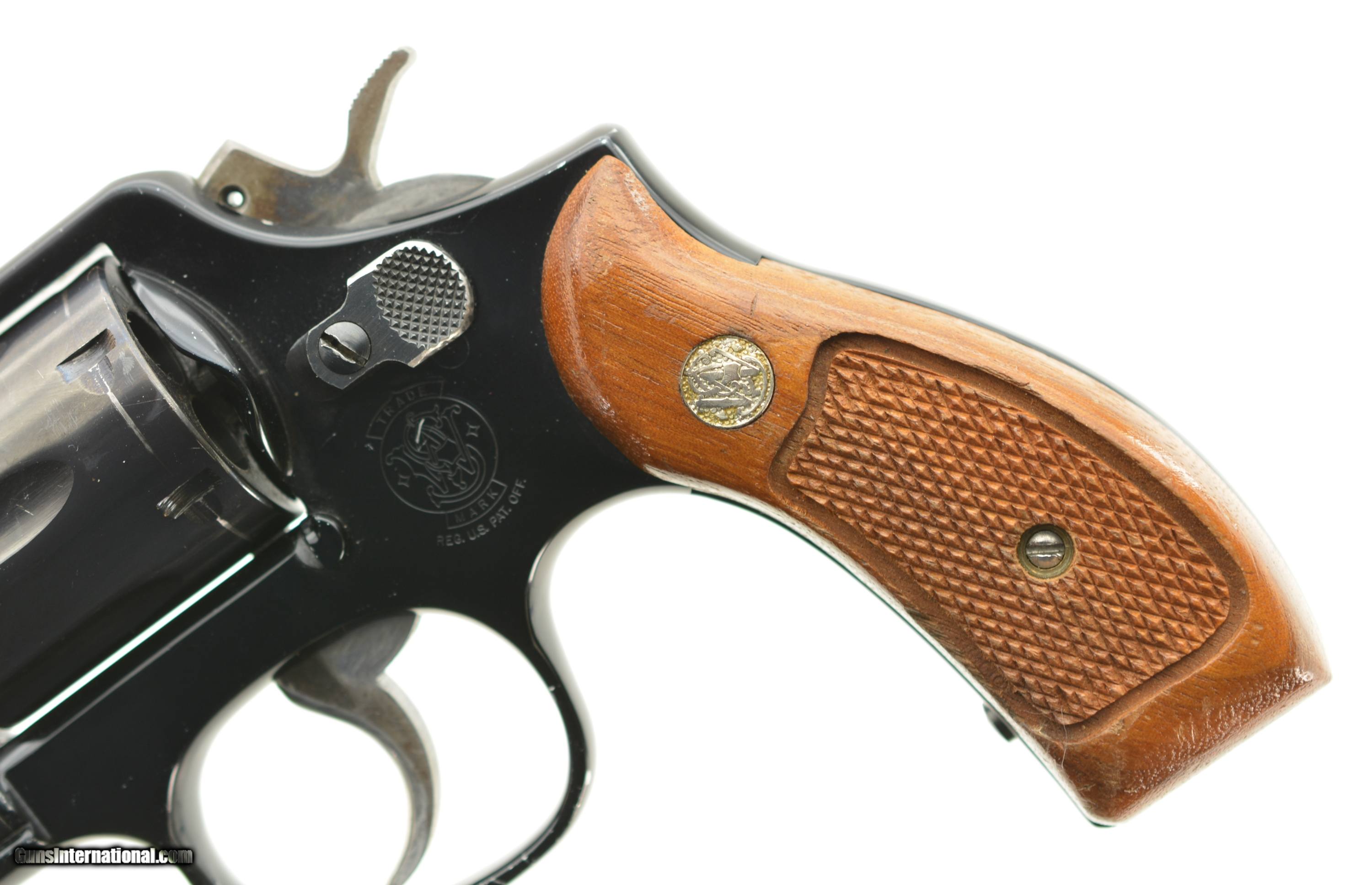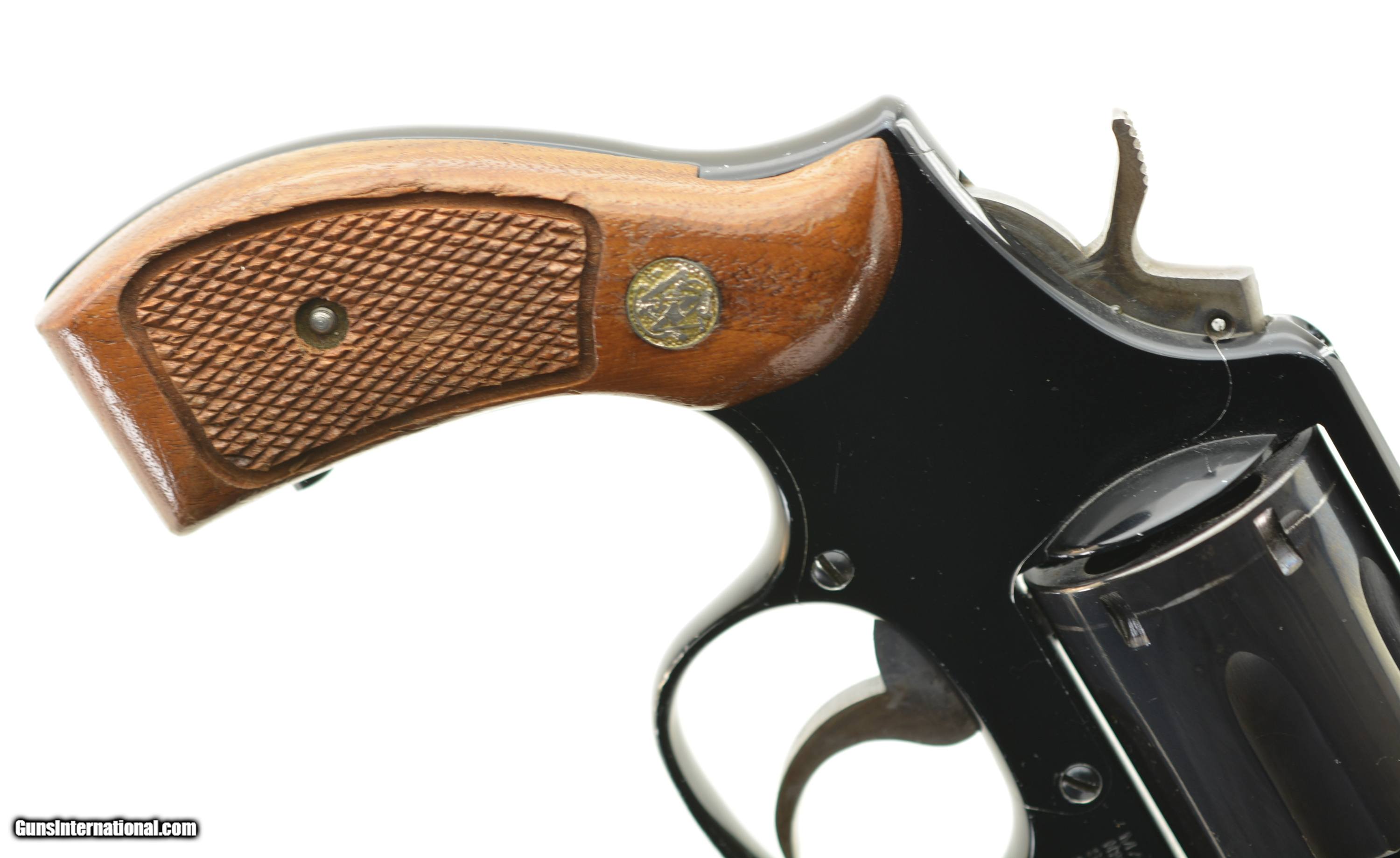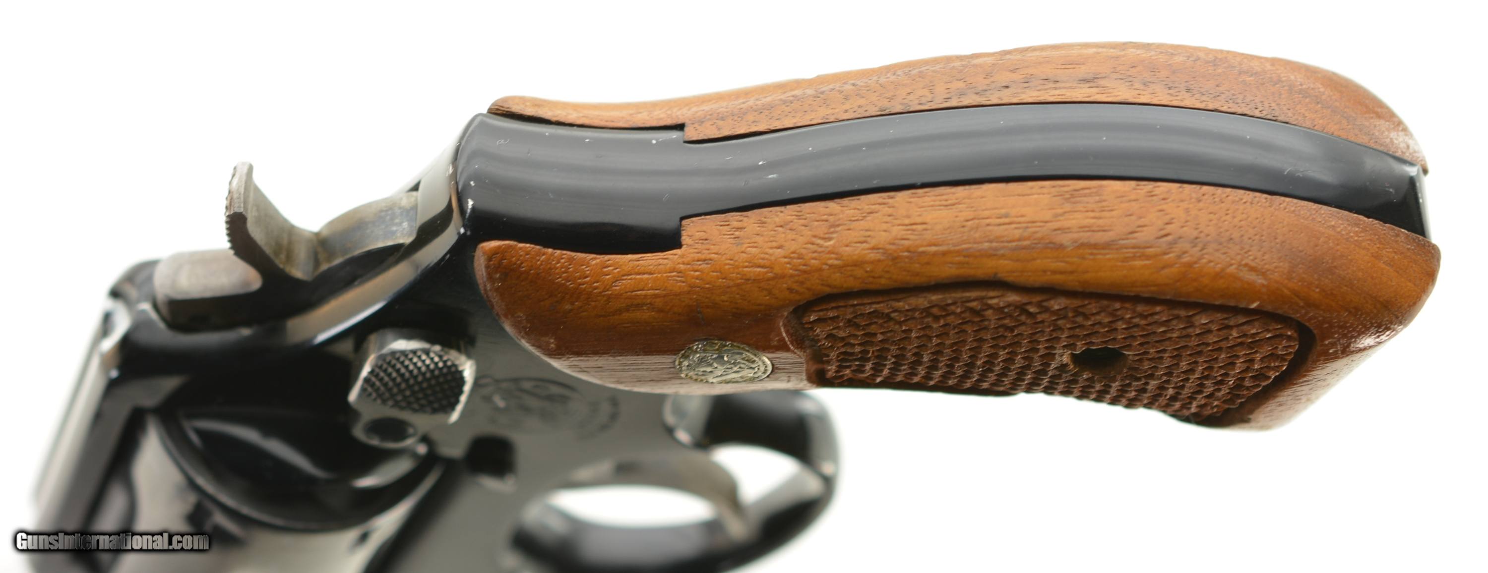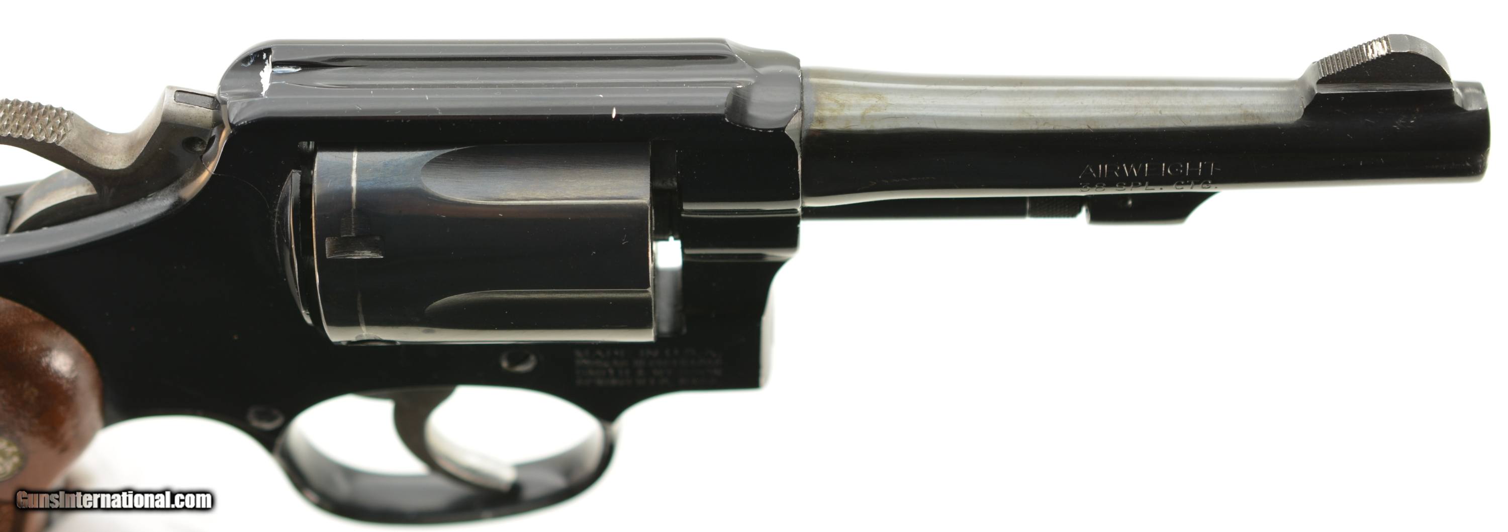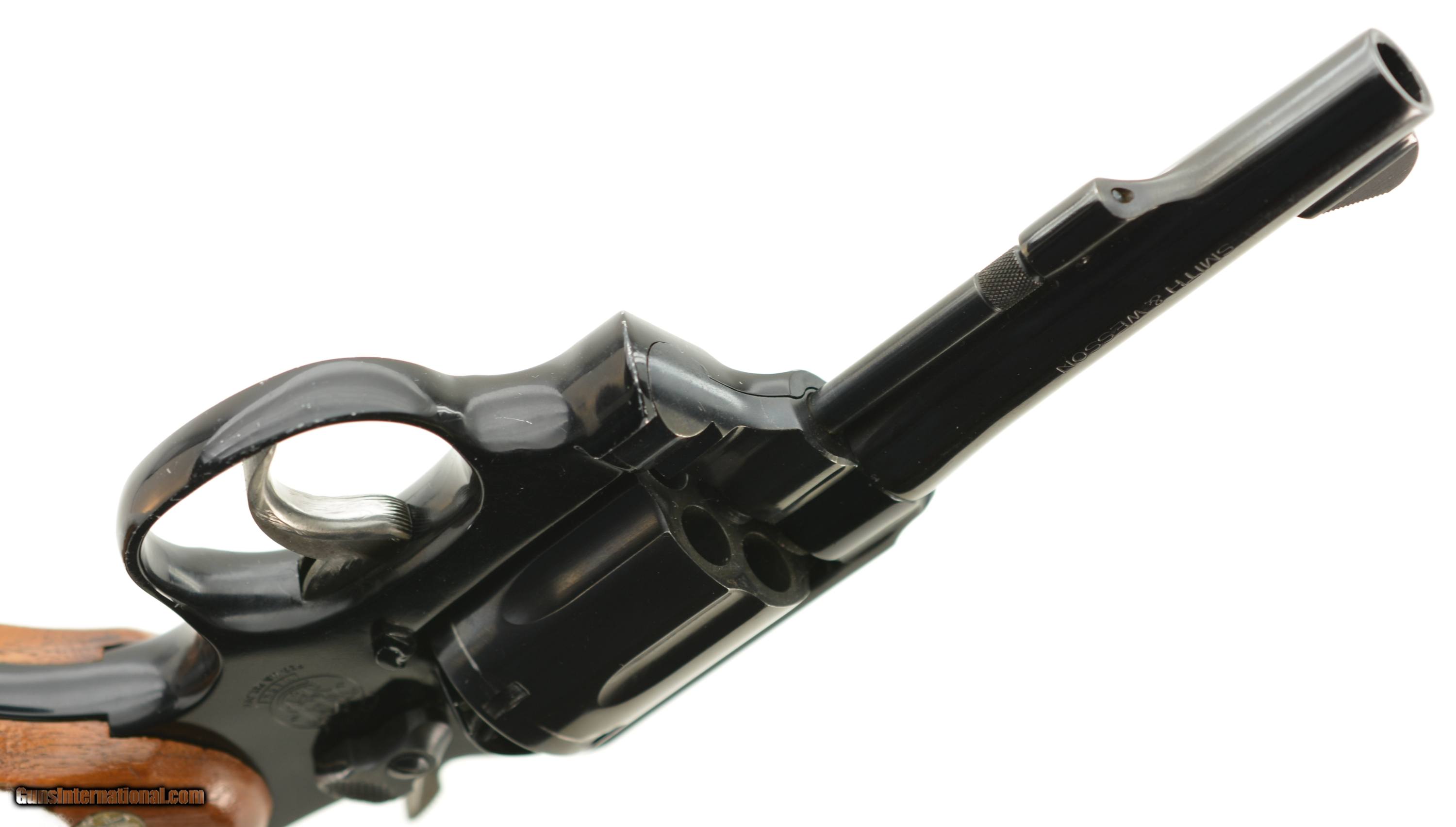 Description: Serial #ACZ0503, .38 Special, 4" barrel with an excellent, bright bore. This is revolver has 95-97% of the original blue remaining on the barrel and cylinder, while the lightweight alloy frame has a commensurate amount of the original black anodized finish remaining. The hammer and trigger have retained about 60-70% of the original color case-hardening, with the balance faded to bright gray. The checkered S&W grips have some minor wear and flattening of the points, as well as a small chip at the leading edge on the left panel. Some white paint has been added to the front and rear sights for greater visibility, and the action functions flawlessly. This is a fine example of a lightweight, service sized S&W revolver. FFL SOLD Manufacturer: S&W Model: 12 Serial Number: ACZ0503 Caliber Info: .38 SPL Gauge Info: .38 SPL |